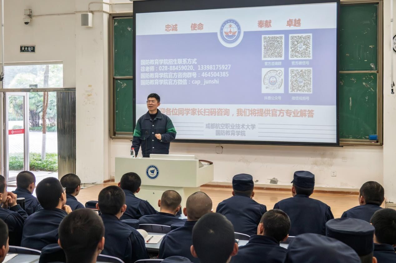为落实学校2026年招生宣传工作任务,普及航空国防知识、定向培养军士政策,提升定向培养军士综合素质,保障2026年寒假返乡宣讲工作高质量开展,1月13日,定向培养军士2026年“归三载逐梦地,讲强国强军梦”寒假返乡宣传培训暨动员会在2-118教室举行。赴北京、河南、江苏、浙江等29个省的200余支宣传队参加培训。