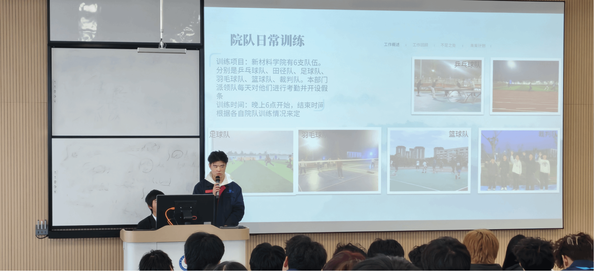 大会伊始,各部门同学按既定顺序,结合PPT演示,从工作开展情况、成果亮点、现存问题及未来规划等方面作详细汇报。汇报全面展现了团学组织在团组织建设、志愿实践、宣传报道、权益维护、班风学风建设、文体活动推进等方面的扎实成效,同时也直面工学矛盾、协作效率、活动创新等不足,积极反思,优化举措,通过深入的交流与分享,各部门相互借鉴有益经验,进一步凝聚了思想共识,明确了责任使命。