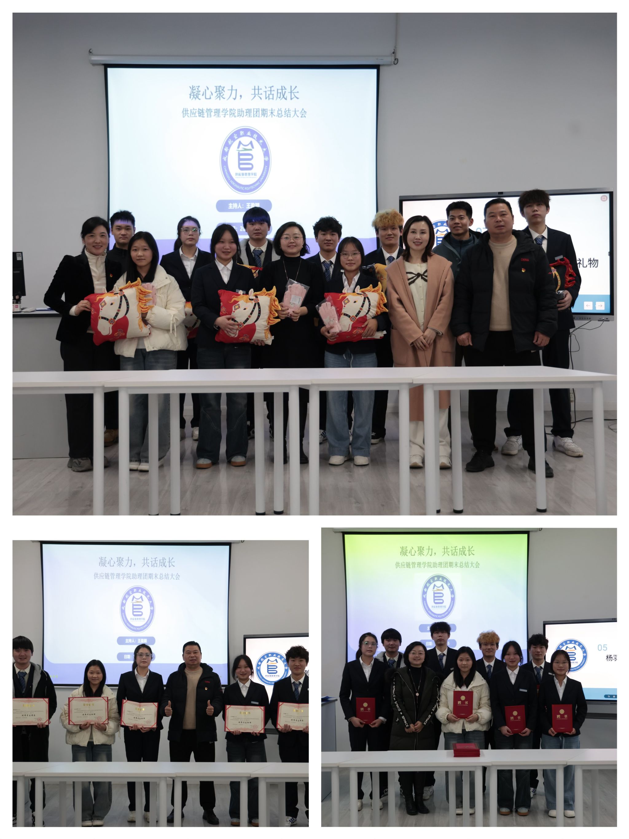 1月15日下午,供应链管理学院于知行楼509A教室召开2025-2026学年第一学期助理团总结表彰大会。学院教学负责人杨羽宇、学生工作负责人赖启财出席会议,助理团指导老师汪丽丽、许敏及全体成员共同与会,回顾学期工作,表彰先进典型,共话团队发展。