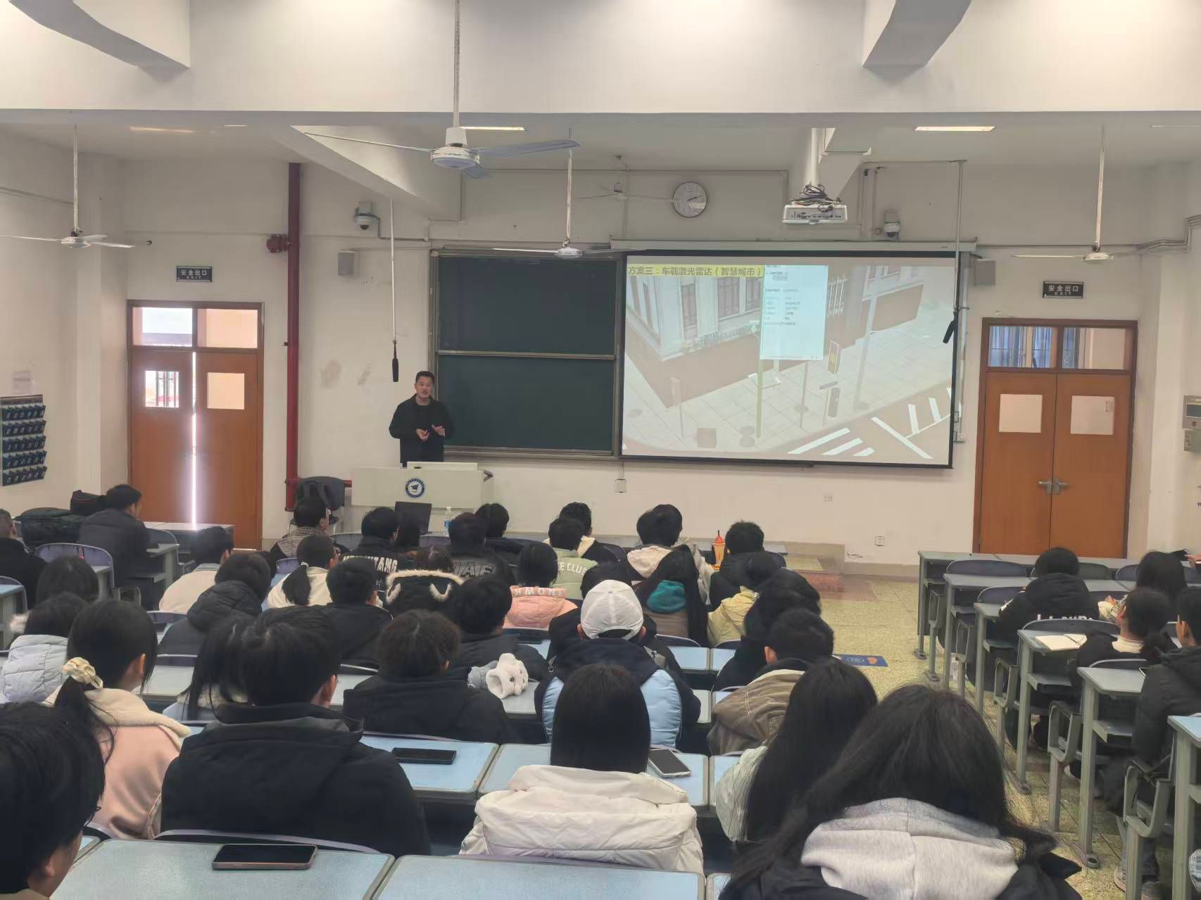 2026年1月14日,无人机产业学院“低空科技进校园”系列活动第一期顺利举行,特邀上海华测导航技术股份有限公司(以下简称“华测导航”)走进成航校园,开展以“低空智联、产教共融”为主题的企业宣讲与技术实践体验活动,华测导航三维、海洋技术专家廖良波、蒋晨龙到活动现场授课和演示。无人机测绘技术专业负责人陈宗杰、辅导员虞剑英及无人机测绘技术专业80余名学生共同参与。