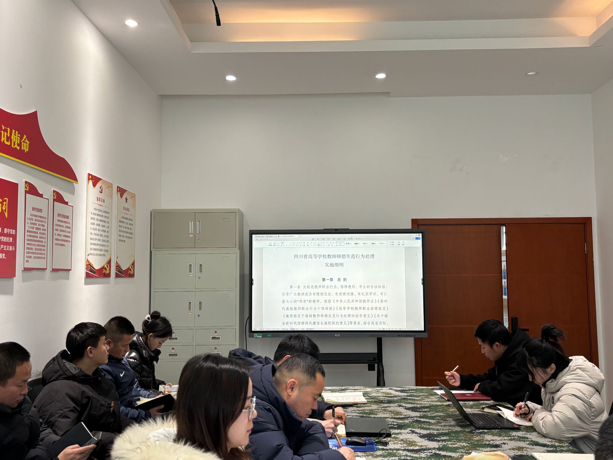 教职工正在学习“四川省高等学校教师师德失范行为处理实施细则”