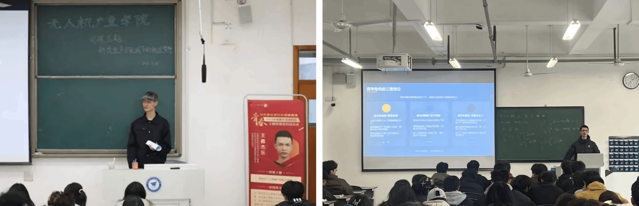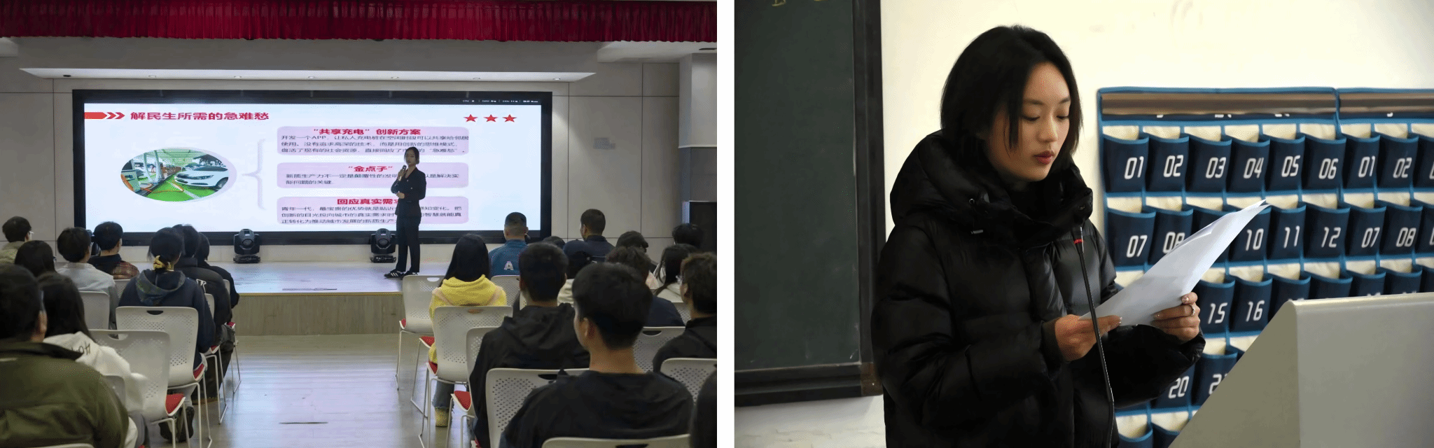 聚焦新质生产力,点燃创新报国热情。10月22日,汽车工程学院石雯丽同学面向全校团员青年主讲校级示范团课,结合成都产业升级案例与校园服务创新实践,生动阐释新质生产力赋能城市发展与个人成长的路径。11月至12月,国防教育学院王鑫杰乐同学先后走进无人机产业学院、供应链管理学院、汽车工程学院开展宣讲,以自身成长经历和“智能维修工具箱”等创新项目为例,诠释新质生产力内涵,引导青年学子将创新思维融入专业学习与职业规划。