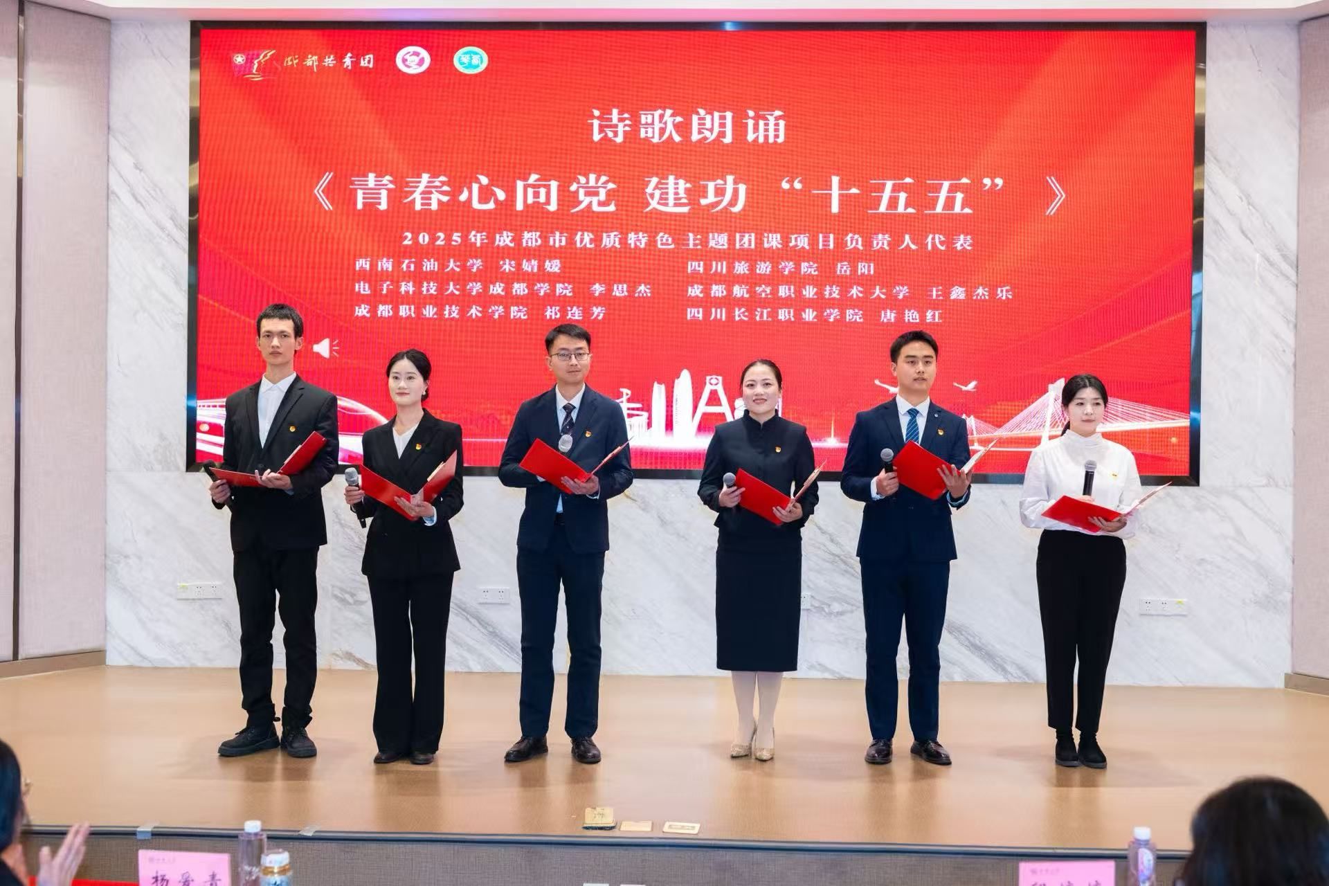 王鑫杰乐作为团员青年代表参与2025年度成都市优质特色主题团课交流展示活动的《青春心向党 建功“十五五”》朗诵