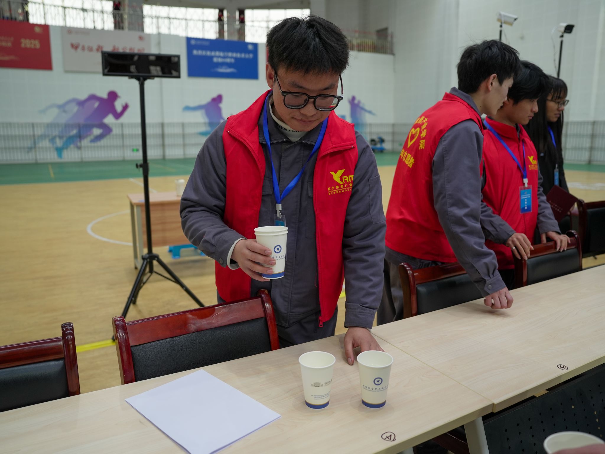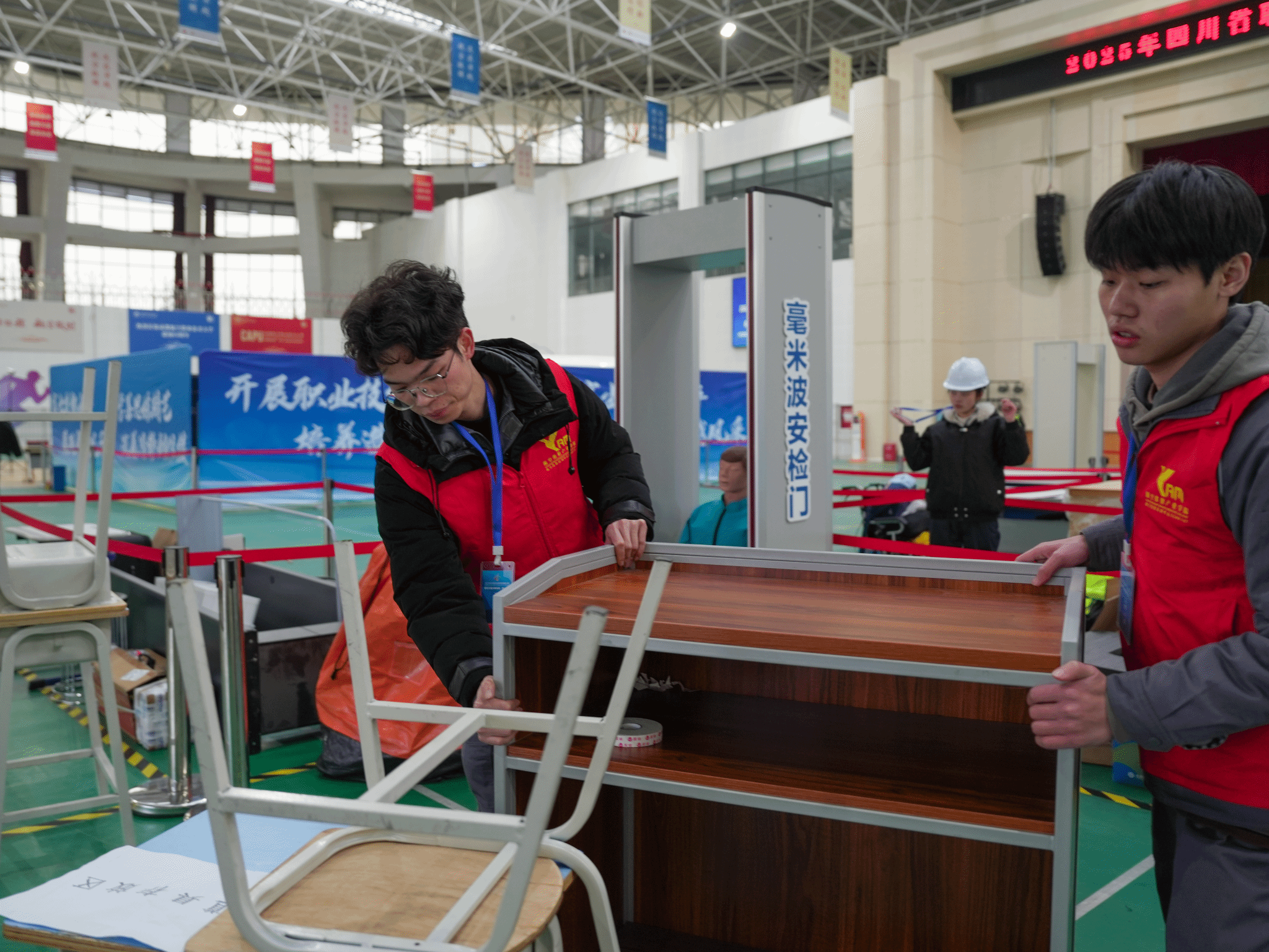 大赛期间,志愿者们以饱满的热情和严谨的态度准时到岗,身影遍布赛场各关键点位。在入口检录处,他们面带微笑,高效有序地完成核对、指引工作;在选手休息区,他们贴心提供后勤支持,并适时为候赛选手加油鼓劲;在设备保障点,他们协助搬运器材,确保比赛设备就位无误。面对各类咨询与需求,志愿者们始终耐心细致、响应及时。他们用真诚的微笑和辛勤的汗水,为大赛的平稳运行提供了坚实保障,也成为赛场上一道靓丽而温暖的风景线。