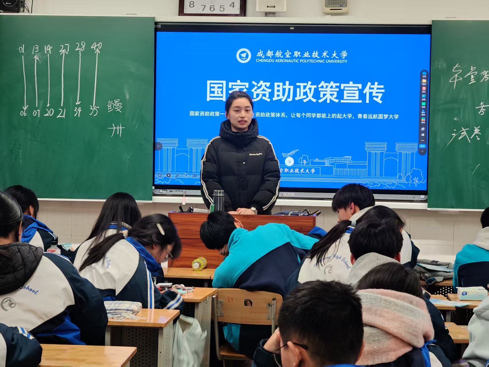 互动环节气氛热烈。许多学生第一次意识到,大学的专业如此生动地与社会服务相连。一位高二学生表示:“原来资助政策不是简单的申请表格,它背后是国家和学校周密的支持网络。学姐的分享让我觉得,大学和未来的梦想,离我更近、更真实了。”邹陈菲的宣讲,不仅传递了政策信息,更以其专业的形象和温暖的互动,在许多学子心中种下了一颗关于蓝天、关于未来的种子。