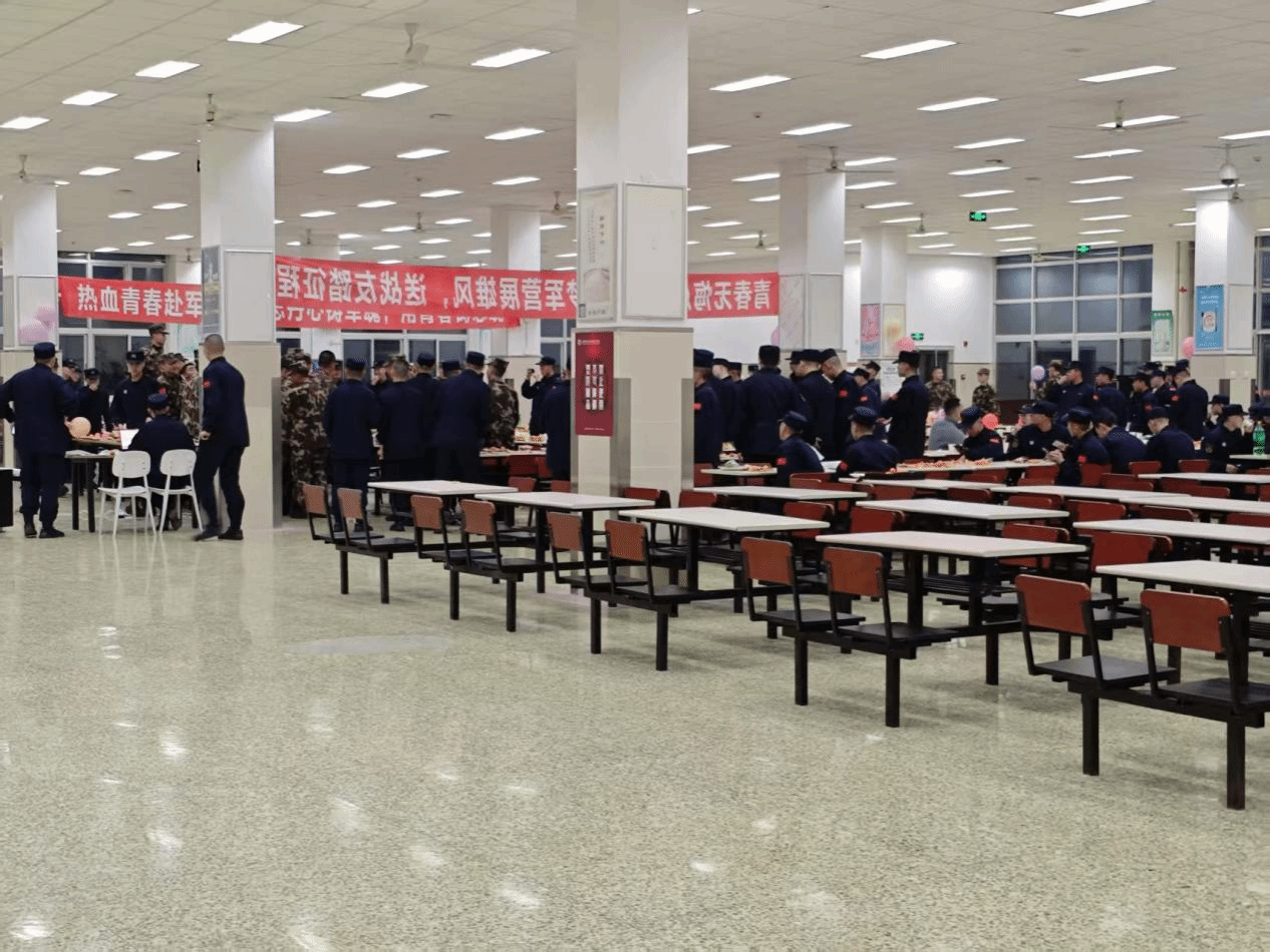 愿全体入伍军士生身披荣光、勇担使命,在军营绽放青春光彩。食堂也将继续立足本职,用心服务,扎实做好后勤保障,为校园各类活动保驾护航。