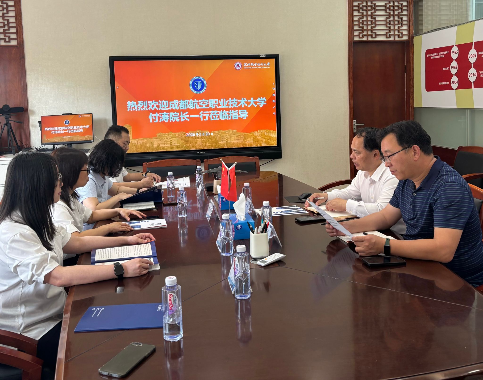 为对标行业前沿,推进专业群特色发展与实训基地高水平建设,3月20日,供应链管理学院负责人付涛、教学负责人杨羽宇带队前往深圳职业技术大学(简称“深职大”)开展专业调研,此次调研聚焦职业本科办学与实训基地建设。