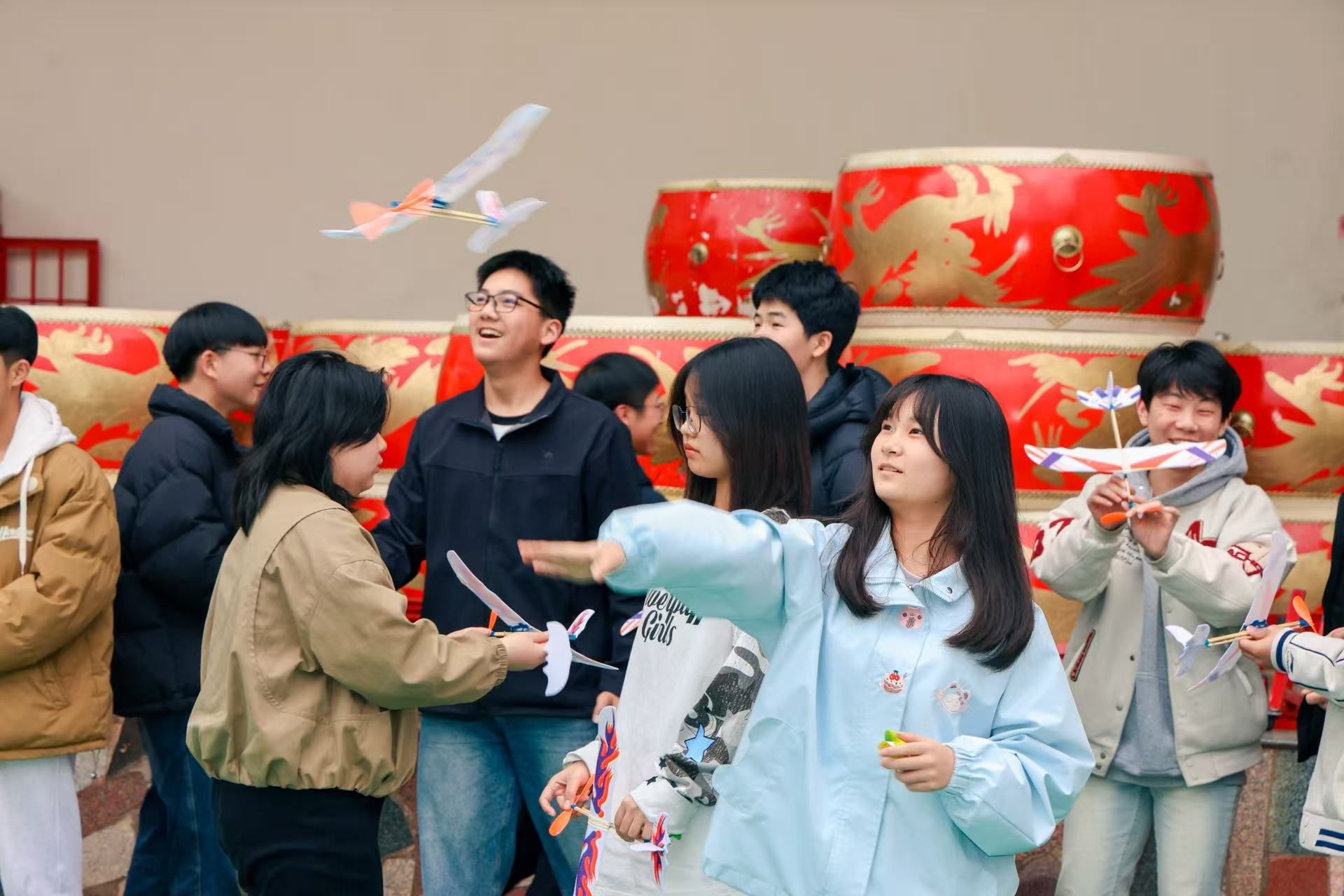 培训结束后,一场精彩的方程式飞机比赛随即拉开帷幕。赛场上,同学们手持自己亲手制作的飞机模型,蓄力、瞄准、投掷——一架架飞机划出优美的弧线,在空中竞相翱翔。现场气氛热烈,加油声、欢呼声此起彼伏。同学们在比赛中比拼技术、交流心得,充分感受到了航空科技运动带来的快乐与成就感。