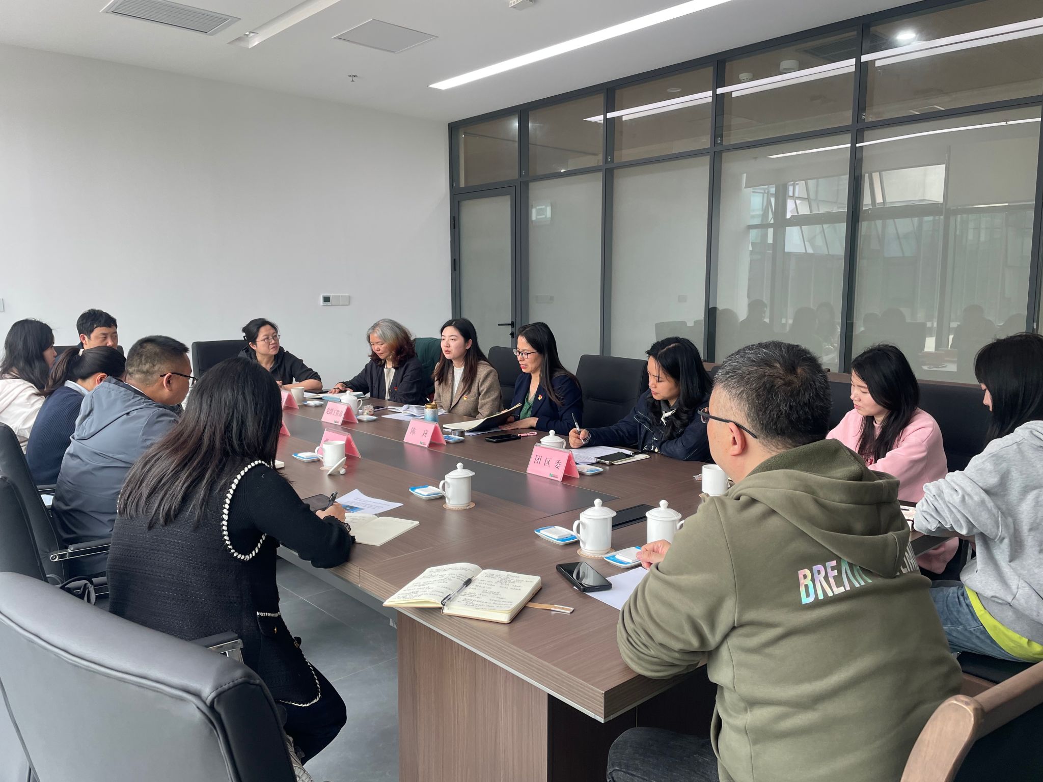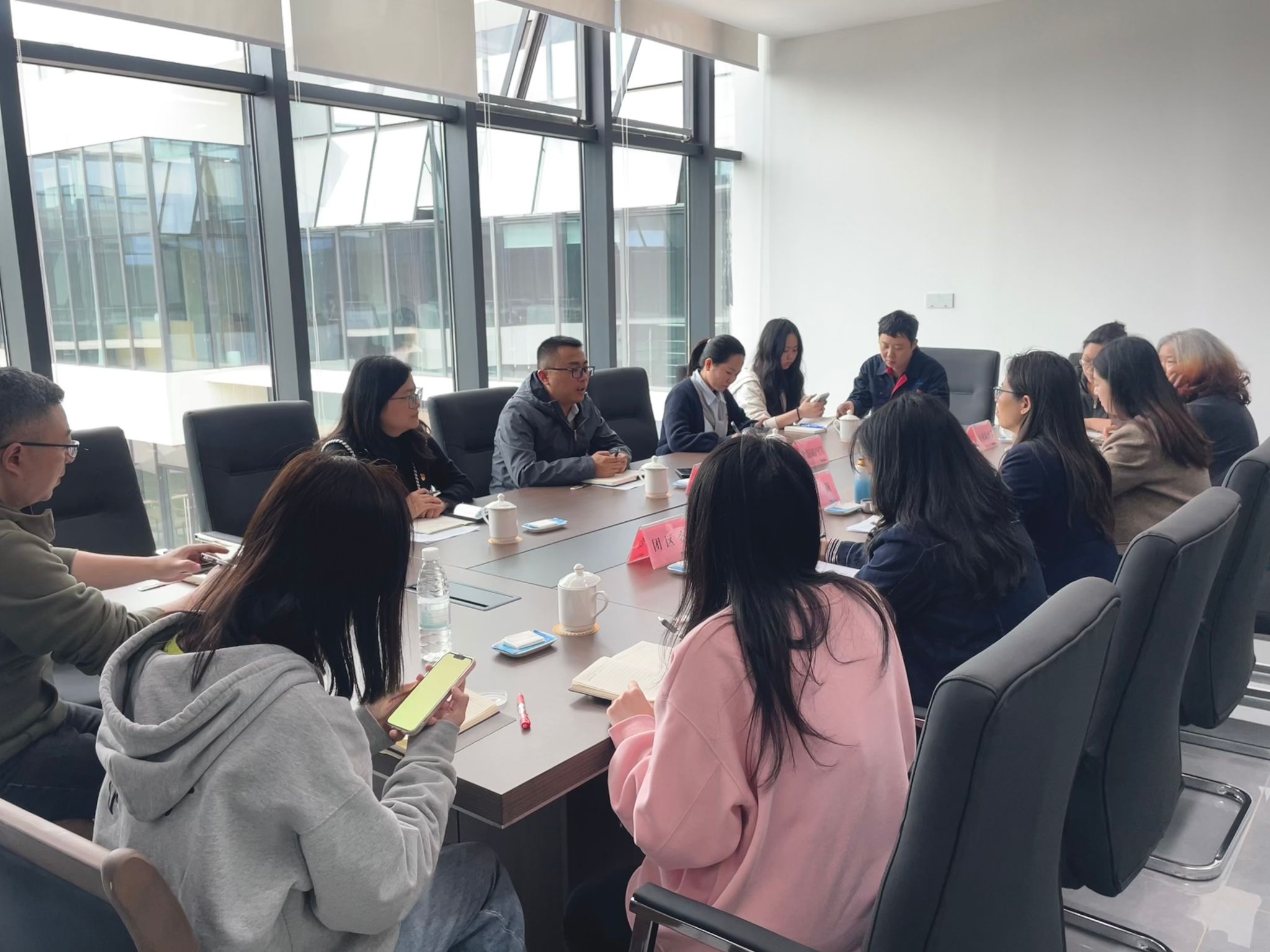 4月7日下午,航空装备制造产业学院党建工作负责人曹仕平、学生工作负责人范豫鲁一行前往新都高新技术产业园区,与新都高新区管委会(以下简称“管委会”)就党建工作进行交流座谈。会议由管委会党群部长陈莉主持,企业服务部、团区委青工部及相关部门负责人参加。双方围绕党建共建、产教融合、人才培养及青年服务等议题展开务实讨论,现场交流气氛热烈。