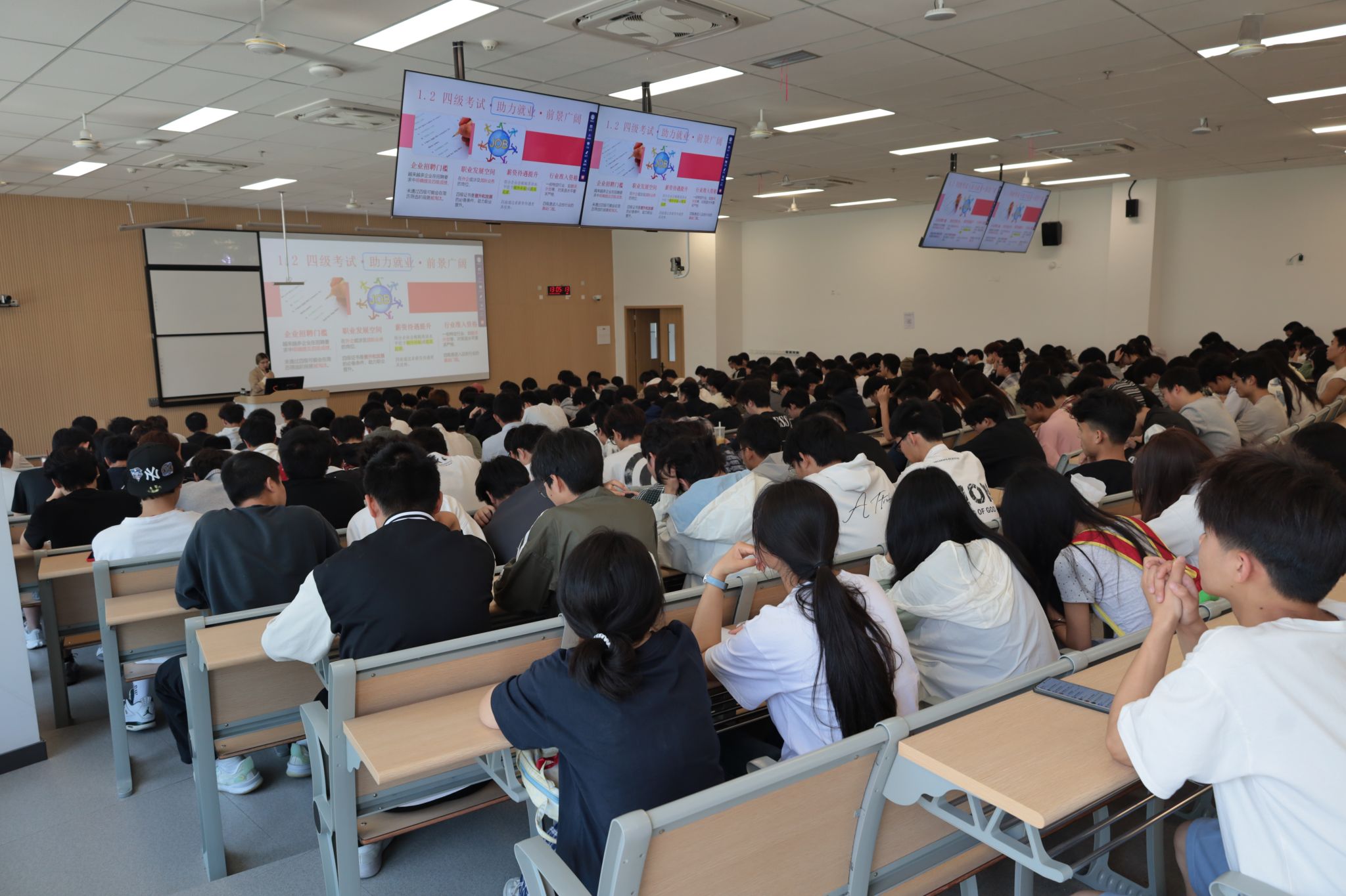 讲座开始前,学院李维老师向同学们介绍了唐丽霞老师的教学背景与丰富经验,并阐明了举办本次讲座的重要意义。李维指出,英语四级考试不仅是对学生英语水平的检验,更是培养自主学习能力、养成良好学习习惯的重要契机。学院始终高度重视学生的成长发展,希望通过引入优质校外教育资源,为同学们提供切实有效的备考指导,传递学院的关心与支持。