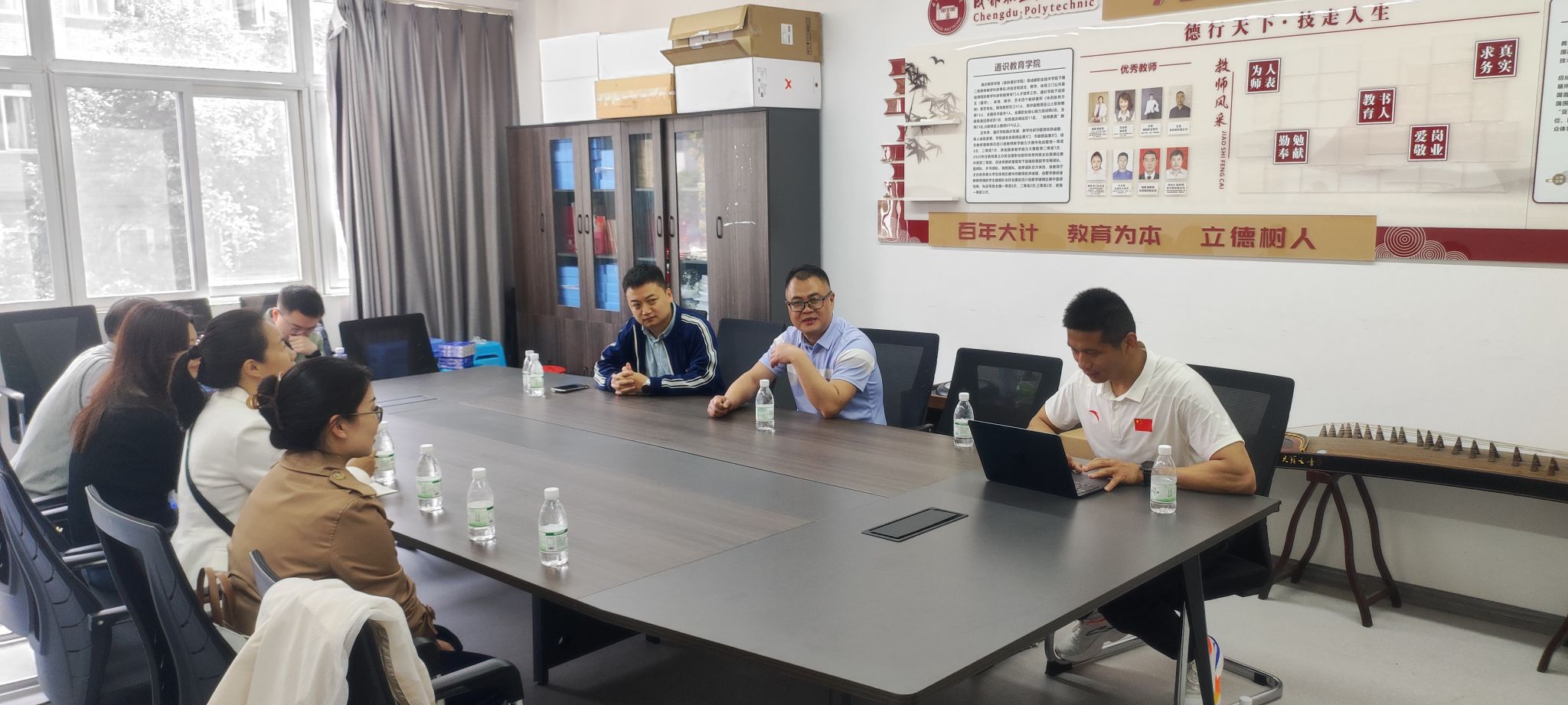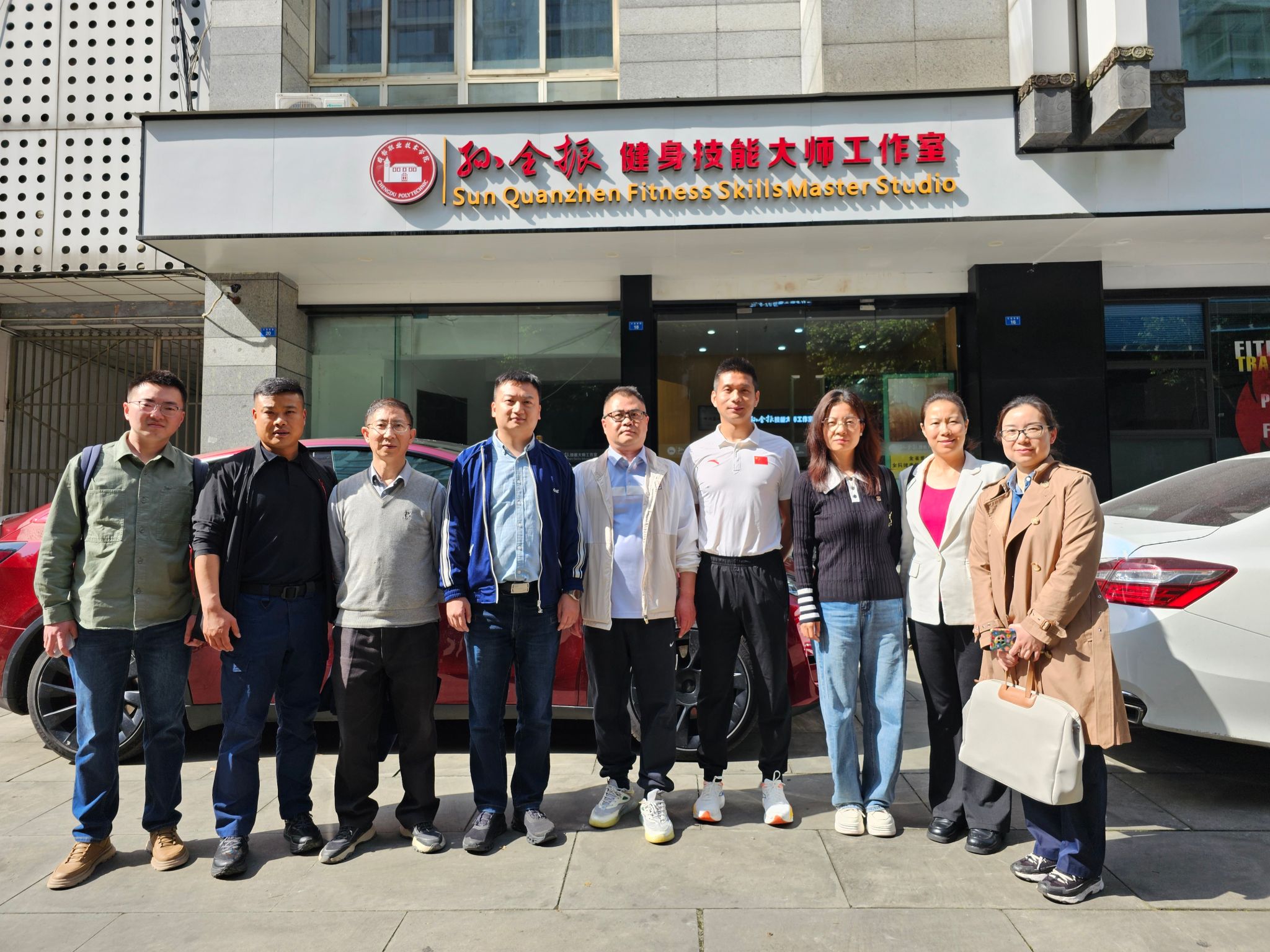 为深入贯彻职业教育高质量发展要求,学习高技能人才工作室建设、工匠培育、技能竞赛成果转化等先进经验,2026年4月14日下午,成都航空职业技术大学民航运输学院金良奎副教授率教师团队一行8人,赴成都职业技术学院孙全振健身技能大师工作室开展专题调研交流。