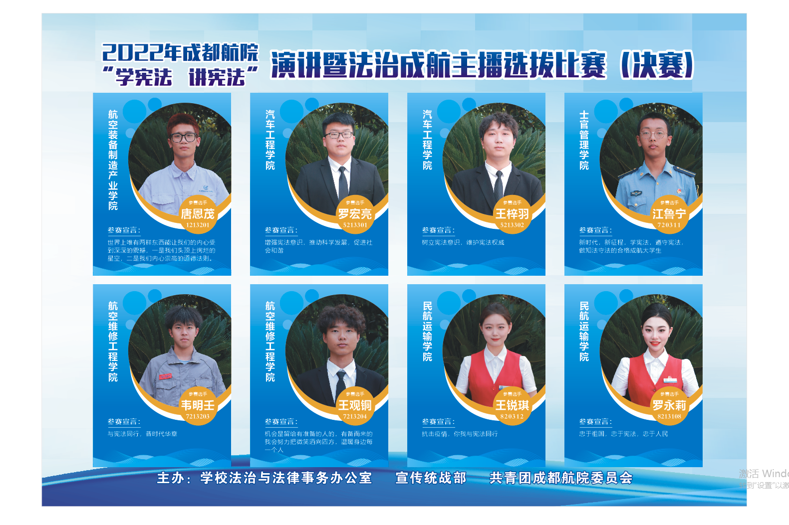 此次演讲比赛由学校法治与法律事务办公室、宣传统战部、共青团成都航院委员会联合主办,党政办学生助理团、大学生记者团、校团委宣传部具体承办。不仅为学校具有演讲爱好的同学提供了一个展示自我的平台,也在广大学生中掀起了“学宪法、讲宪法”的学习热潮,进一步推动了我校深入贯彻落实上级精神,不断夯实“法治成航”与依法治校建设。