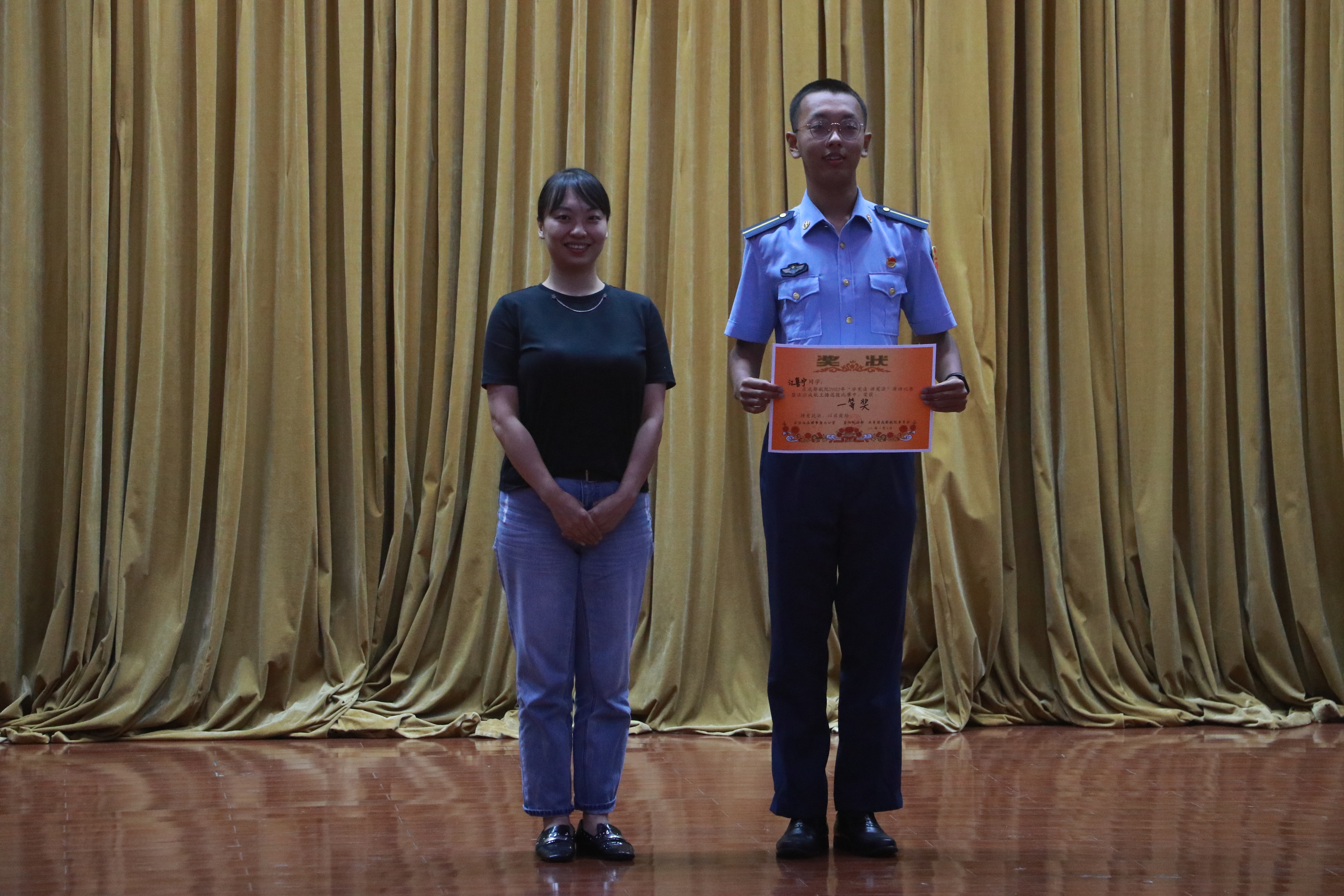 参赛选手抽取演讲主题及出场顺序后,在紧张的氛围中开始了第二轮的“随机命题演讲”。经过激烈地角逐,士官管理学院720311班江鲁宁同学凭借出色发挥,以《众志成城,法治是取得抗疫斗争伟大胜利的牢固基础》为题的演讲摘得本次比赛桂冠与最佳风采奖,8213108班罗永莉同学、5213301班罗宏亮同学获得二等奖;820312班王锐琪同学、7213204班王观铜同学获得三等奖。校团委副书记邵红梅为获奖选手颁发奖状并合影。