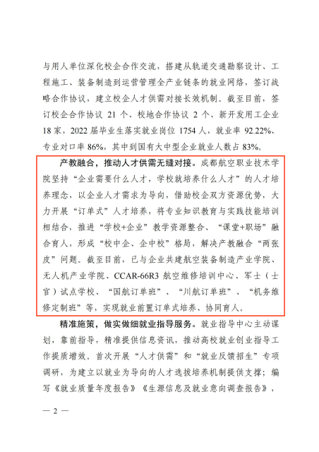 下一步,学校将按照习近平总书记来川视察重要指示精神的总体要求,用实际行动践行总书记对高校毕业生就业创业提出的重要要求,深度推进产教融合,紧密开展校企合作,服务航空强国战略、国防军队建设、制造强省战略,办好人民满意的职业教育,为全面建设社会主义现代化四川提供高素质技术技能人才支撑。简报原文如下:
