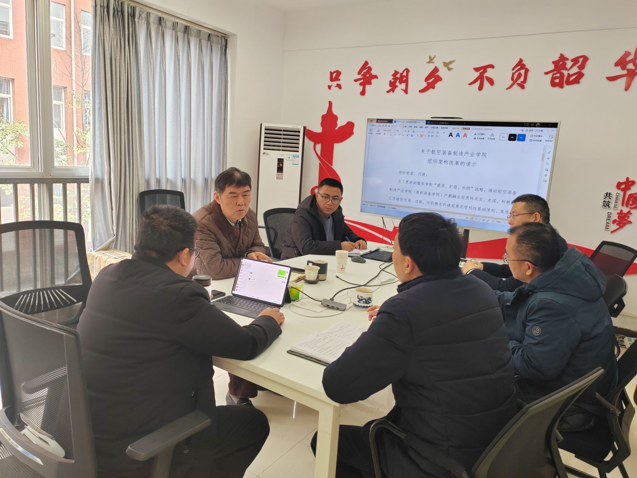 2月1日上午,装备学院特聘院长汤立民以及全体领导班子成员在厚德楼二楼会议室召开装备学院组织架构改革讨论会。会议主要以装备学院现有基础对组织架构改革进行了分析和讨论。汤立民表示,装备学院应主动对接头部航空制造企业需求,抓紧搭建工程研究平台,帮助企业解决在“智改数转”中的难题,进一步提升教师、学生工程科研能力,同时还应抓紧建立质量保障体系和申请武器装备科研许可证。装备学院院长何龙讲到,搭建相关科研和社会服务平台将有利于推动装备学院产教融合实质性走实、走深,科教融汇突破性开局、启航,为高质量完成“双高”建设和职教本科破局奠定学科性基础架构。会议决定就相关会议结果向学校提交请示。
