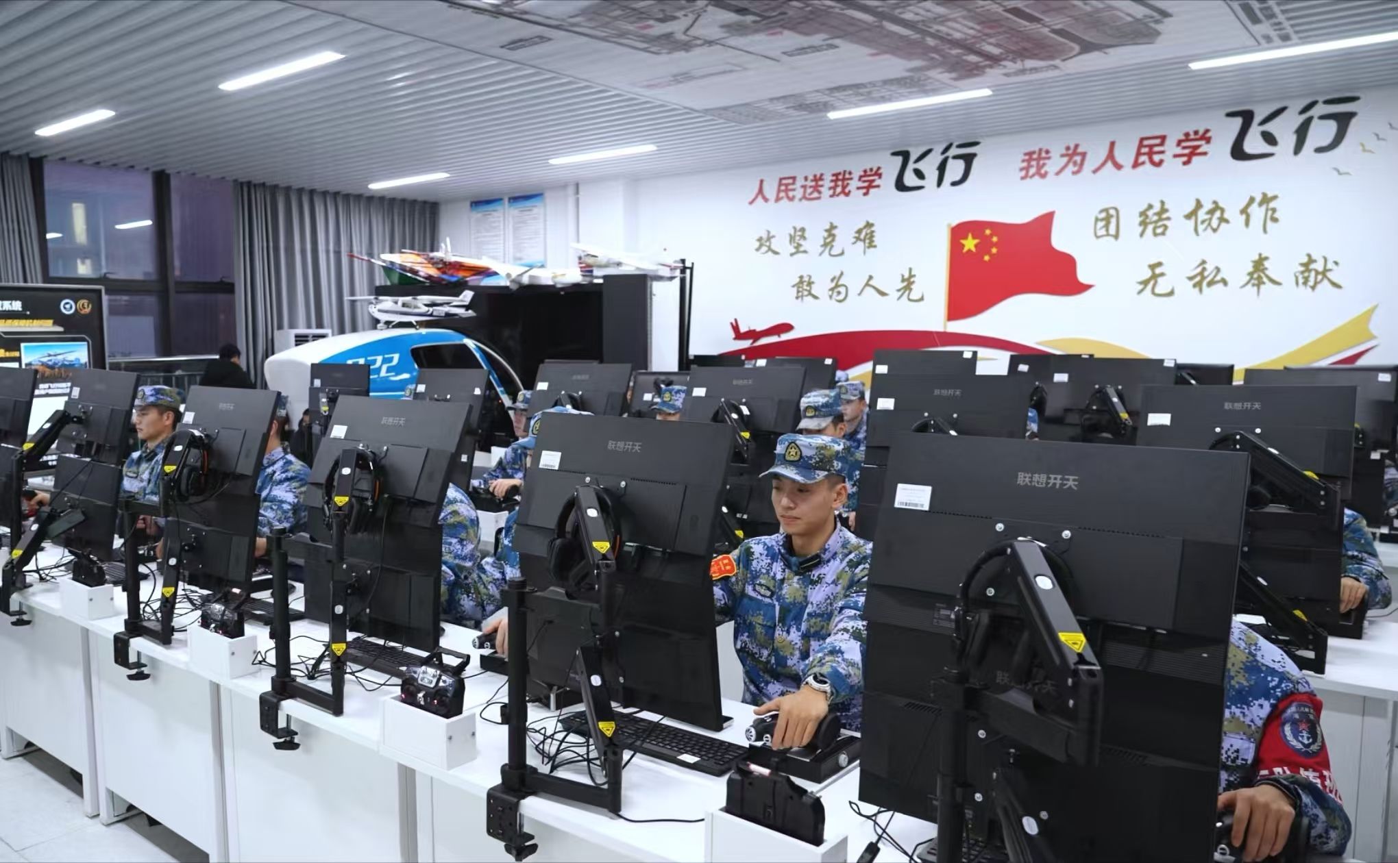 走进实验室,穿着各色迷彩服的学员们正在一个个独立的“驾驶位”上进行练习,他们操作的系统格外引人注目:起飞、转向、俯冲、滚转……坐在教室里就能操纵着飞机“腾云驾雾”,这样的体验真是太酷啦!