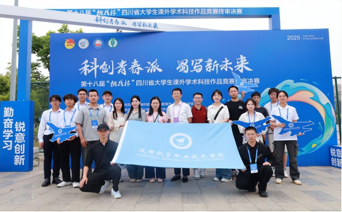 科创青春派,蜀写新未来。5月26日,第十八届“挑战杯”四川省大学生课外学术科技作品竞赛终审决赛在成都医学院落下帷幕。据悉,本届“挑战杯”大赛由团省委、省委组织部、教育厅、科技厅、人力资源和社会保障厅、省科协、省社会科学院、省学联、成都市新都区人民政府共同主办,共吸引四川省121所高校、18万余名青年学生参与,共计报送2.2万件作品,近1400件作品进入省赛初评,505件作品进入省赛终审决赛。在本届赛事中,成都航空职业技术学院(以下简称:成都航院)推报参赛的12个作品悉数获奖,斩获特等奖1项、一等奖1项、二等奖3项、三等奖7项的优异成绩,获奖成绩再创新高,展现了该校在创新创业教育和实践育人领域的丰硕成果。