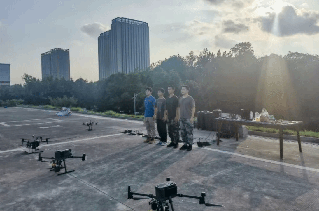 为测试无人机性能,进入2025年7月,团队将训练场搬到了户外空地,从设备布场、安装调试,到实战演示、撤场恢复,团队每天顶着高温进行3到4次全流程模拟。秦勇川回忆,长时间的高温训练不仅消耗队员体力,设备也频频“罢工”:无人机镜头过热明显,时常在建模进度达99%时功亏一篑;投屏演示时也会出现死机黑屏等情况;最严重的是,一架穿越机在飞行中发生自燃……户外实战训练进一步暴露诸多问题:项目方案偏重技术展示,缺乏实战根基;专家指出系统在强电磁干扰和多机协同等方面存在致命缺陷……