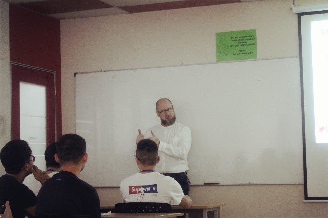 2017年11月27日,第一次清晰的看到英迪,早上8点,英迪的老师和同学早早的在寝室外面等待我们大家集合去食堂吃早餐,去食堂的路上,大家都在诉说着昨晚刚到学校的印象,很多同学一边走路一边环顾着美丽的校园,带着好奇的眼光,不放过任何一处未知的角落。来到餐厅,第一次接触到马来当地的食物,对这色彩鲜丽丰富的特色早餐充满了好奇,种类真的非常的多,多拿滋,特色炒面、炒饭…….(注:马来西亚不食用猪肉)看的大家都迫不及待的想去品尝这不同于国内的早餐。 待全体师生结束后,助理领我们去参加在英迪的第一堂英语课程,不同的上课方式更加的自由,轻松,气氛更加的活泼。