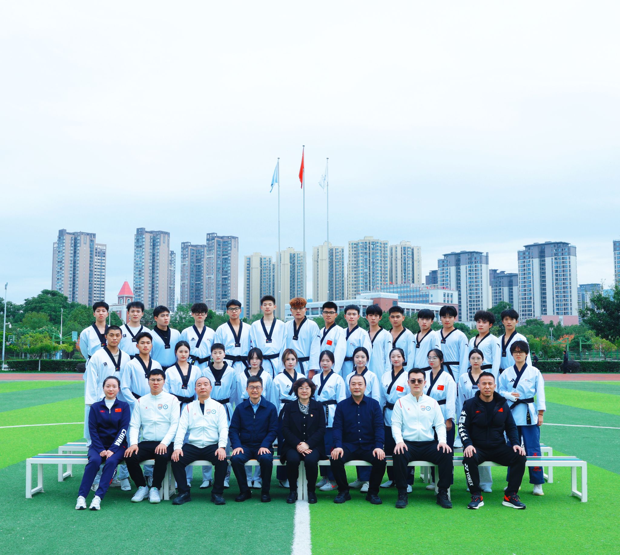 我校队员(青方)参加跆拳道竞技团体比赛 我校队员