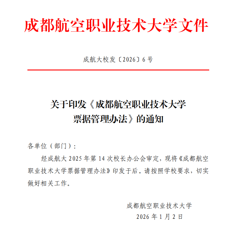 关于印发《成都航空职业技术大学票据管理办法》的通知