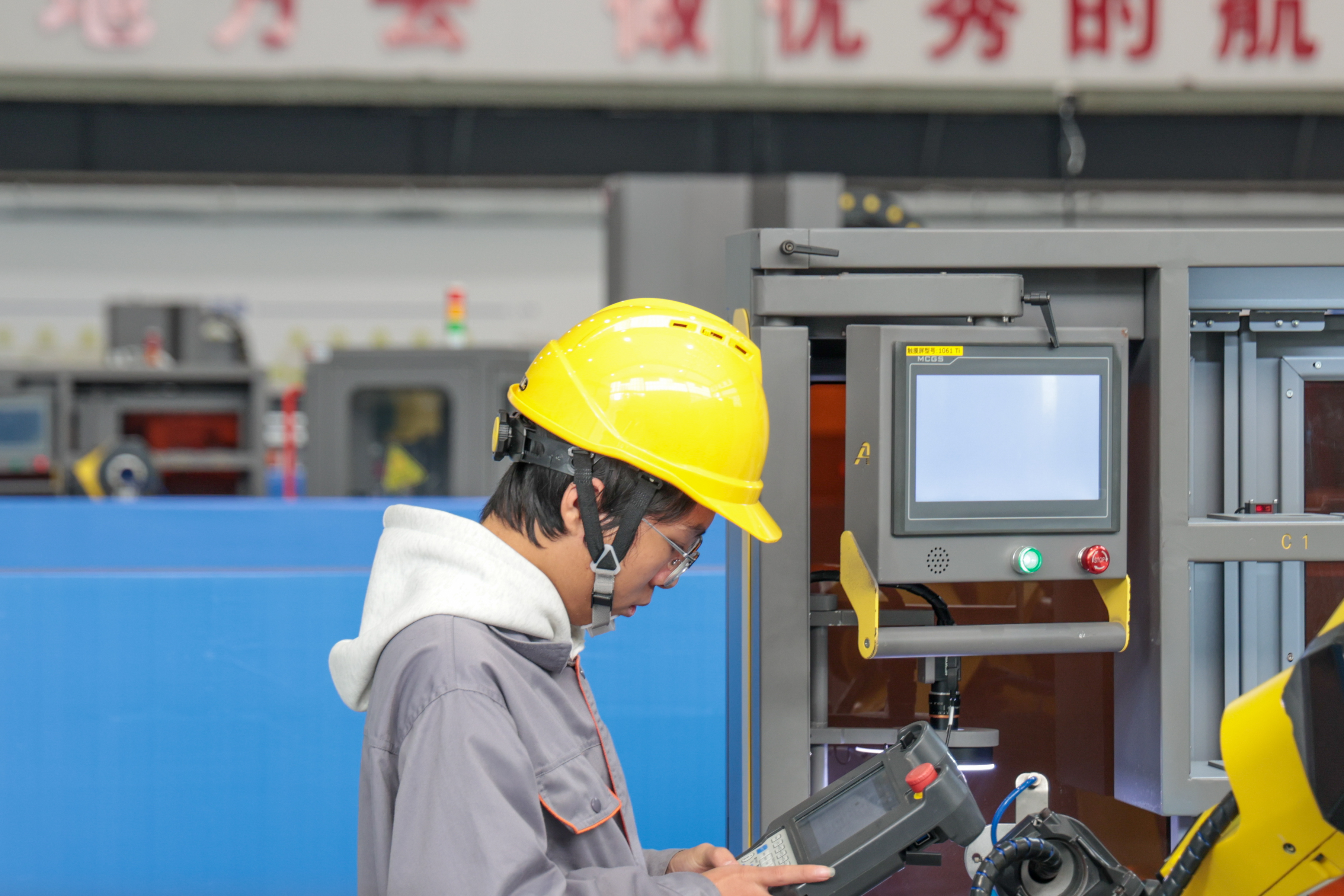 大赛期间,我院志愿者团队全程提供细致服务,从参赛队伍报到、物资发放到场地引导、后勤保障,志愿者们以饱满的热情和专业的素养保障了赛事的高效运转。本次赛项严格对标世界职业院校技能大赛流程,聚焦通用设备制造业大类,面向数字化和智能制造类岗位,主要涉及机械产品数字化设计,数字化制造工艺设计与验证,数字化设备操作,智能生产线现场管控,智能制造产线集成与运行调试等,全面考核选手的专业知识、实操技能与团队协作能力。比赛过程中,各参赛队伍沉着应战、默契配合,充分展现了新时代职教学子扎实的专业功底和精益求精的工匠精神。