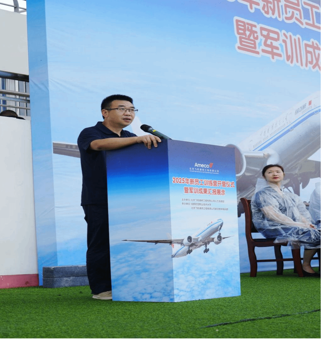 近日,北京飞机维修工程有限公司(以下简称“Ameco”)2025年新员工训练营开营仪式暨军训成果汇报展示活动在成都航空职业技术大学举行。原成都航空职业技术学院副院长何龙,Ameco党委副书记、首席人力资源官王秋奕,Ameco成都分公司党委书记赵宁清,Ameco西南航线中心党委书记冯斌,Ameco人力资源部总经理丁岩、Ameco航空技术培训部总经理林巍翀出席训练营开营仪式暨军训成果汇报展示活动。
