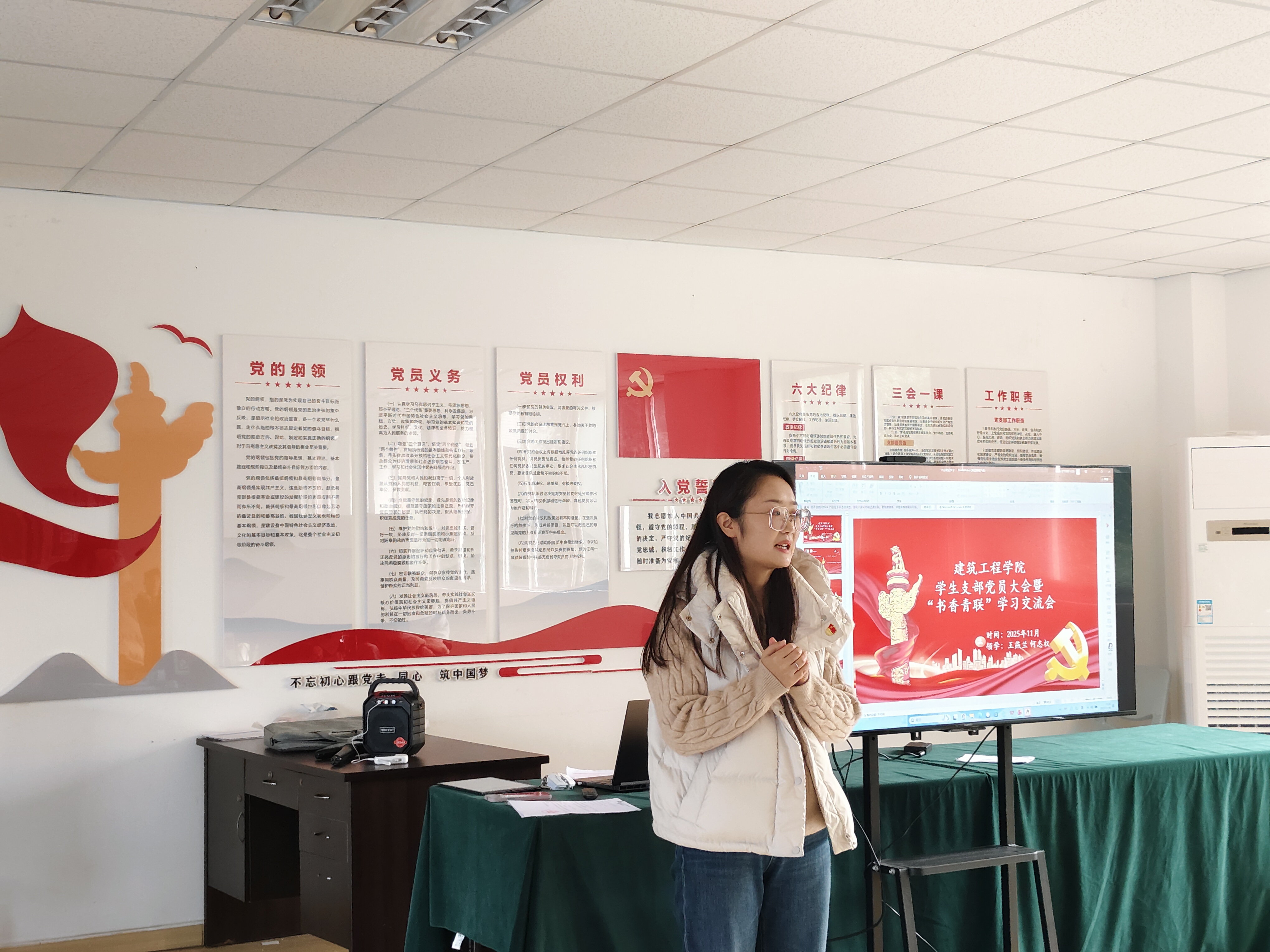 为深入学习贯彻党的二十届四中全会精神,精准把握“十五五”规划核心方向,11月21日,建筑工程学院学生党支部在“一站式”学生社区召开党员大会暨“书香青联”第九期学习交流会。学生党支部书记张乐、支部委员殷玉娟、王南,支部教师王箭、邓雪及青联社全体成员参会。