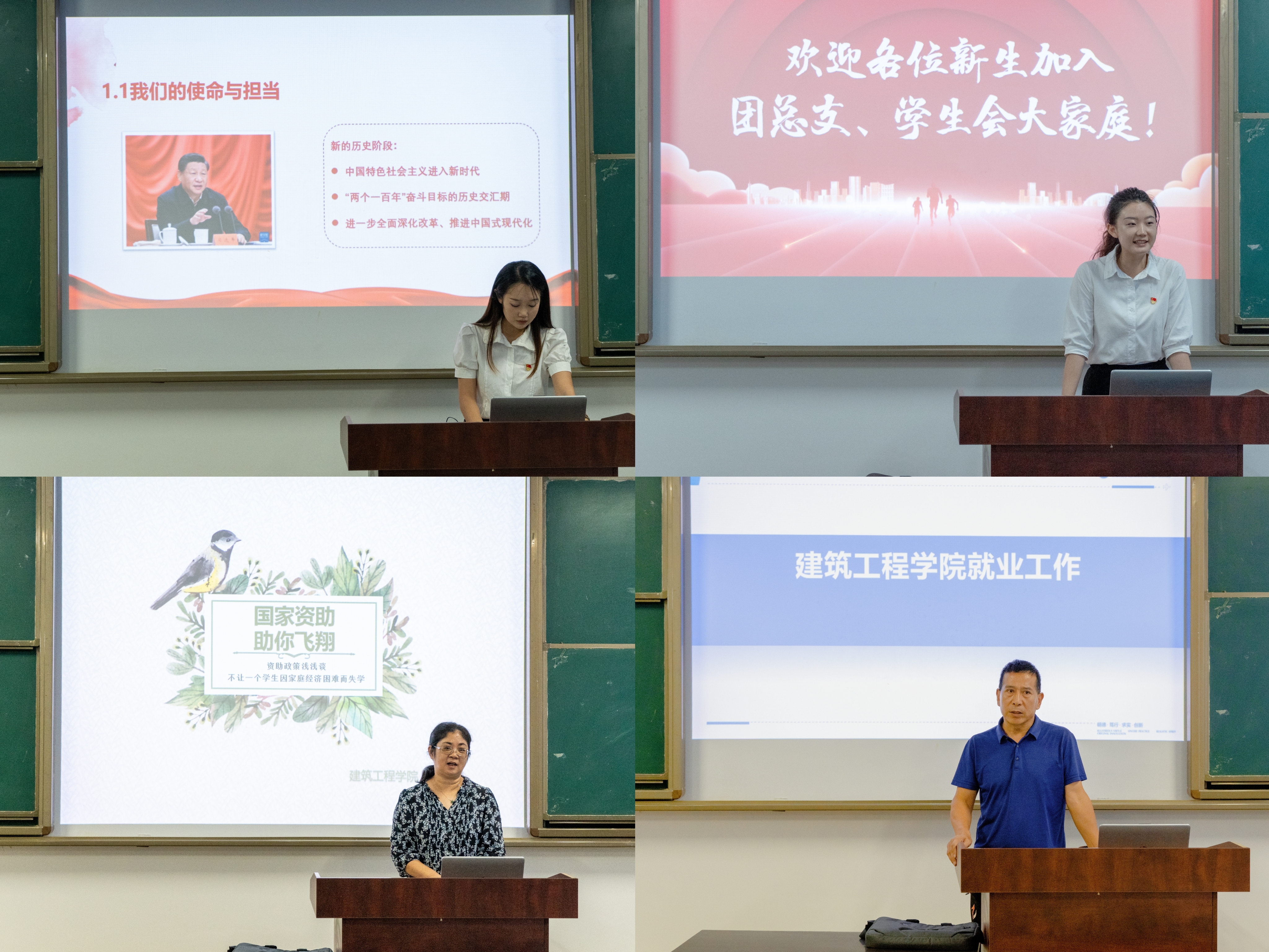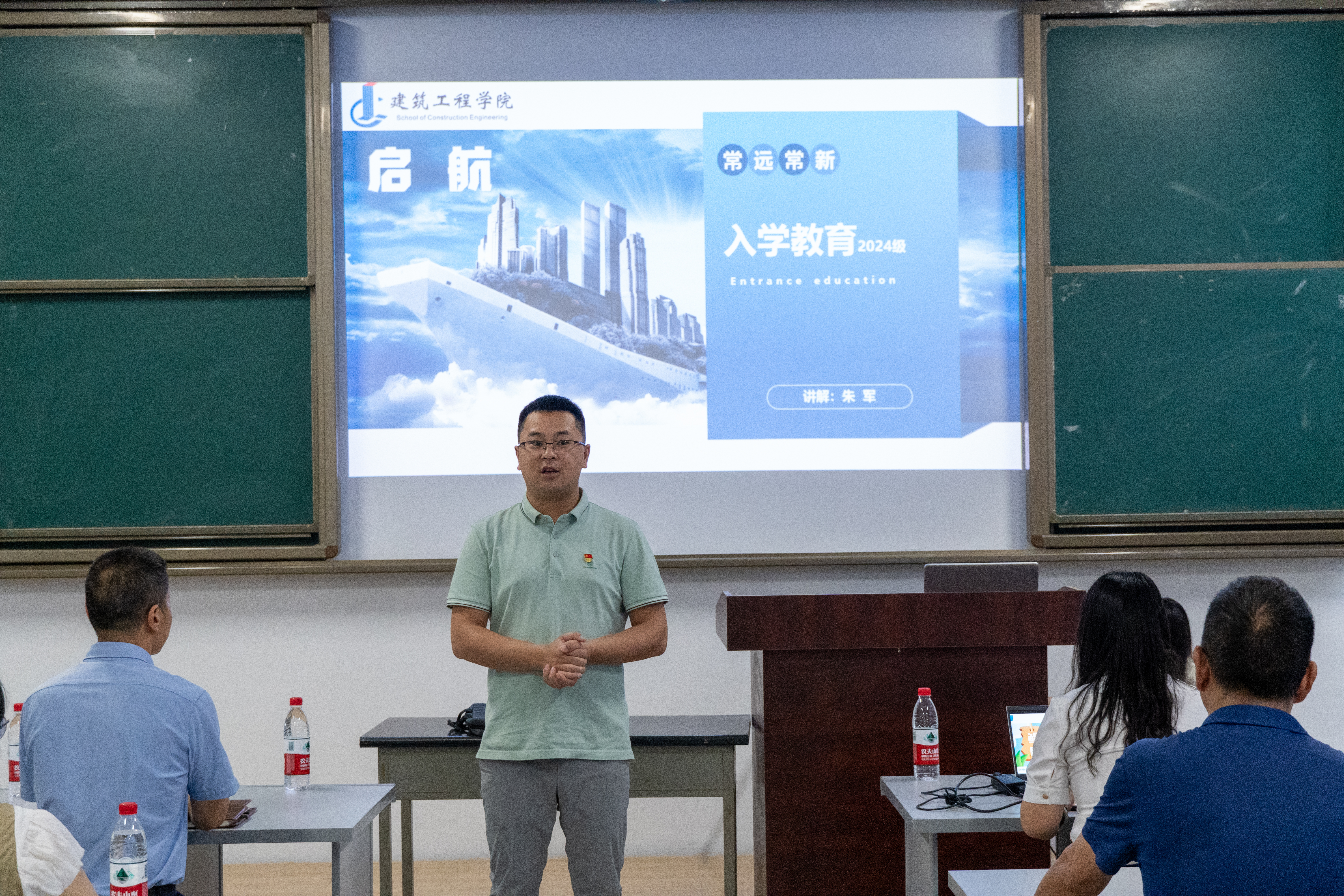 8月31日上午,建筑工程学院于二期实训楼412教室举行2024级新生入学教育。学院党总支书记余彦滨、副书记朱军,副院长冀晓霞、王保磊及相关辅导员出席会议,2024级全体新生参会。
