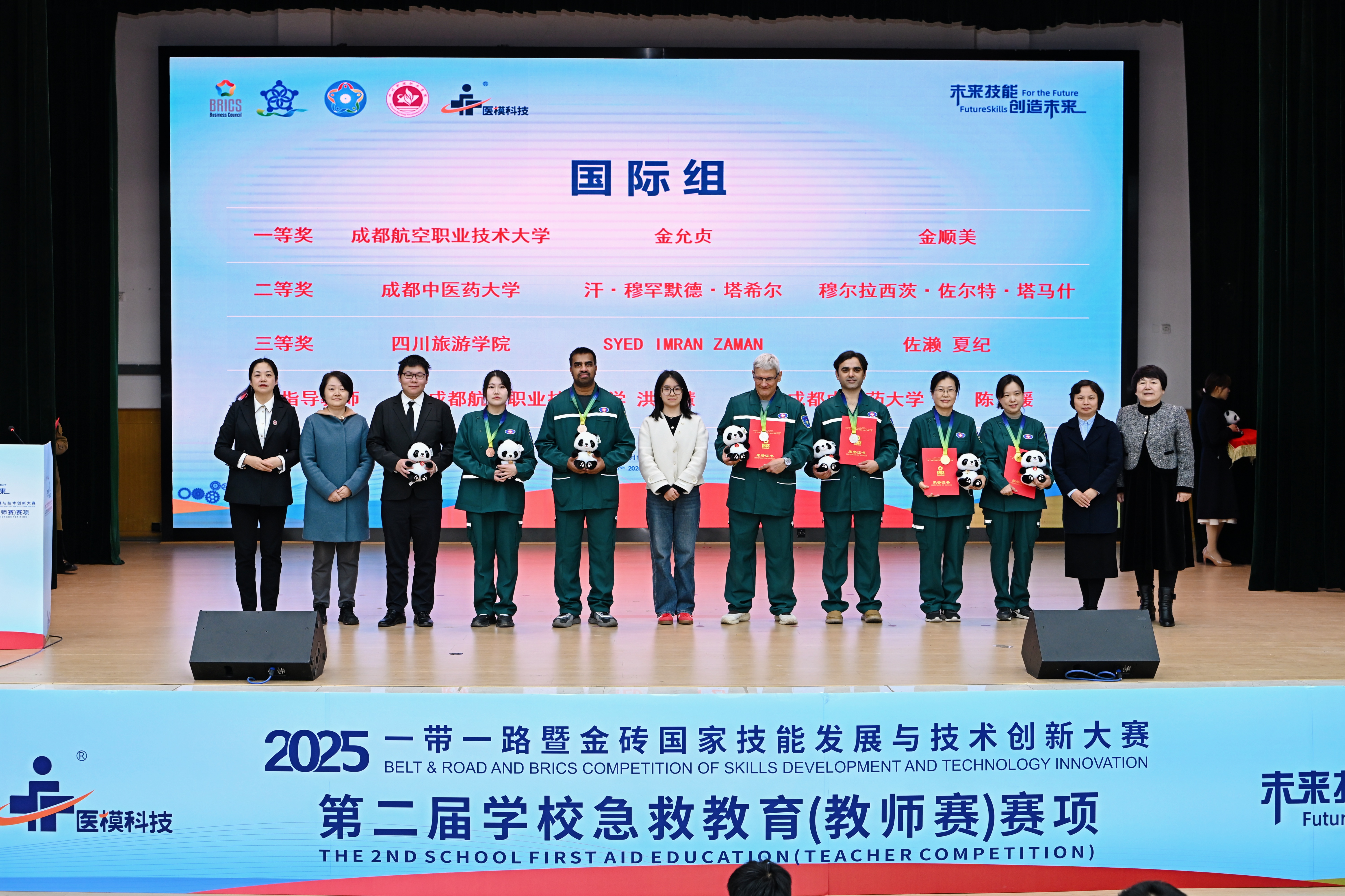 11月15日至17日,2025 “一带一路”暨金砖国家技能发展与技术创新大赛之第二届学校急救教育(教师赛)决赛,在四川护理职业学院成都校区举行。经学校国际合作与交流处推荐,成都航空职业技术大学民航运输学院代表队凭借扎实功底与稳健发挥,从多支参赛队伍中脱颖而出,获国际组一等奖、优秀指导教师奖及最佳组织奖,实现国际赛事成绩新突破。