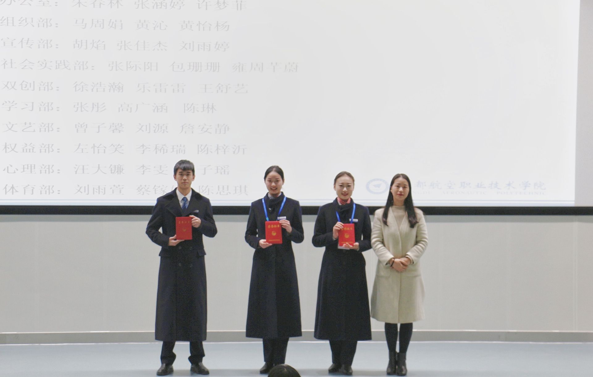 2020年11月26日19:30,我院于博学楼报告厅开展民航运输学院2020级团总支、学生干事培训结业典礼。出席本次大会的有我院团总支书记梁莉莉,辅导员汪桢沛以及团学会全体成员。