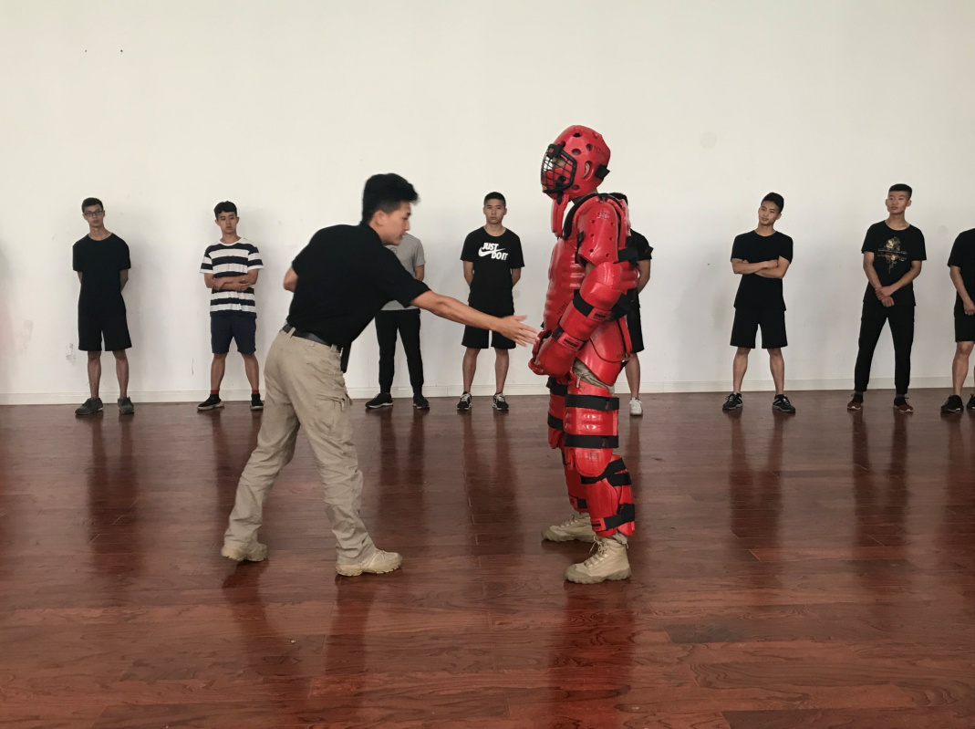 刘宗伟教员介绍以往的实战训练中,航空安全员技能训练多以拳击,散打,搏击,摔跤为主。用竞技体育的规则手段训练非竞技体育科目需求的航空安全员,而且为防止意外受伤,实战训练过程大多在规则限制下点到为止,不能把真实的人与人之间的格斗肢体对抗施展出来。“警务红人对抗”训练是用于防御战术训练的防护装备。其流动性和合身的设计,使受训学员能够进行一系列的防创伤训练,这套装备能增加训练和培训学员的信心,覆盖面积大,能让受训学员参与各种各样的训练活动,能将训练时的精神肉体创伤减至很低。在全国航空保卫训练中也被认可。