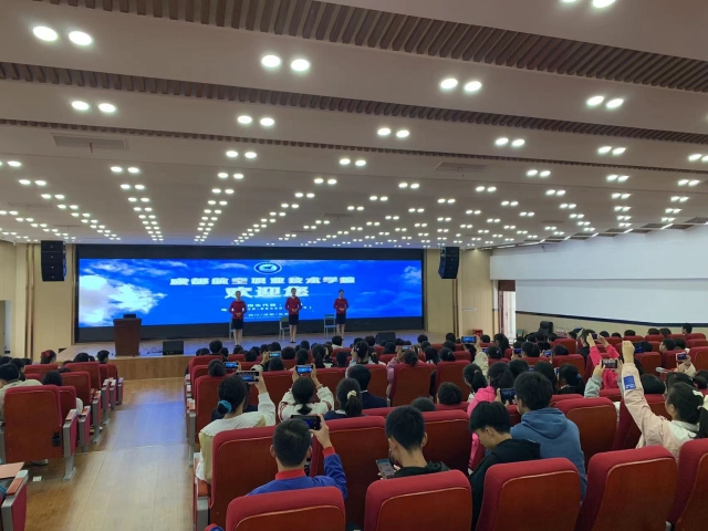 2021年10月29日,民航运输学院沈巧、吴霜、汪桢沛带领三位2019级四川省蚕丝学校毕业生去到母校选拔基地班学生。