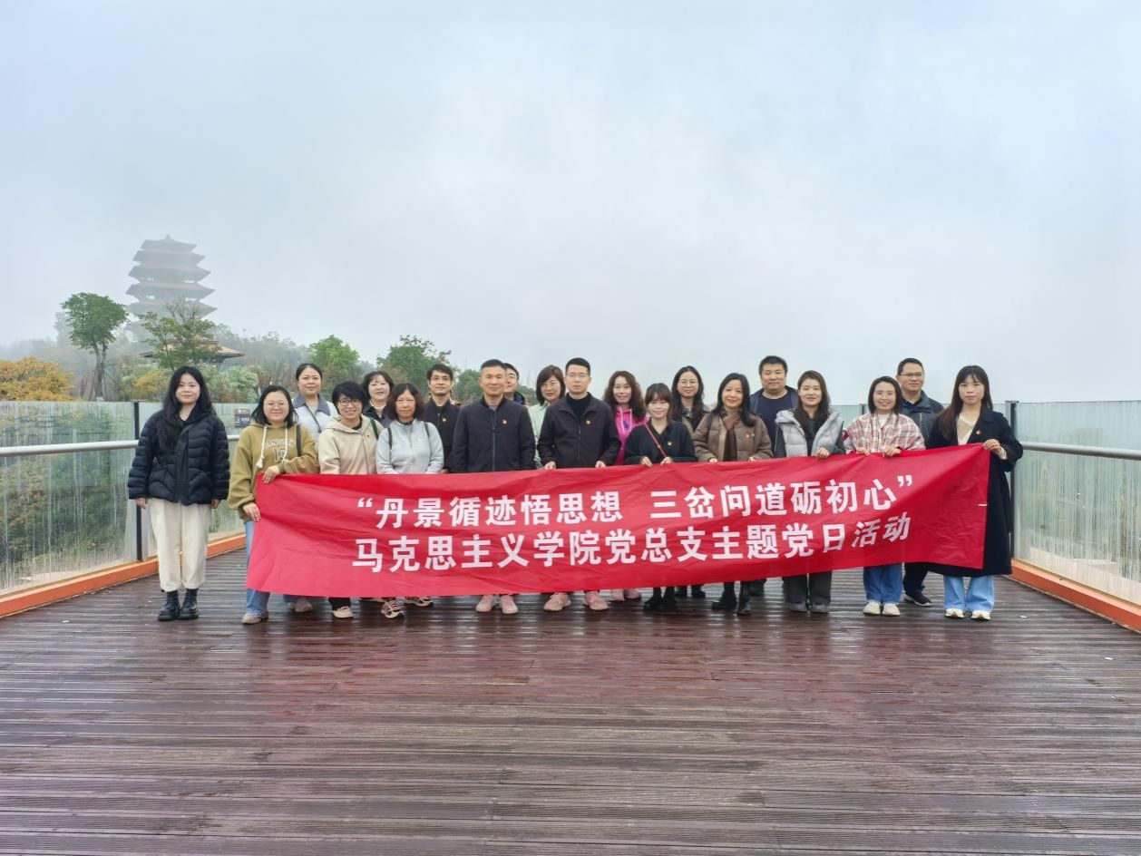 2025年11月16日,马克思主义学院党总支组织全体党员赴简阳丹景山、三岔湖开展了一场以“丹景循迹悟思想,三岔问道砺初心”为主题的户外实践党日活动。