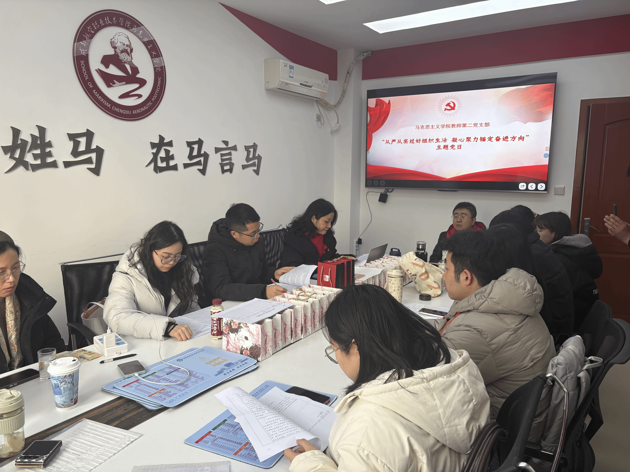 为深入学习贯彻党的二十届四中全会精神,切实增强基层党组织政治功能和组织功能,2026年1月13日,马克思主义学院教师第二党支部召开以“从严从实过好组织生活 凝心聚力锚定奋进方向”为主题的2025年度组织生活会暨主题党日活动。学院主管教学负责人陈阳出席会议,支部书记邢敏主持会议。