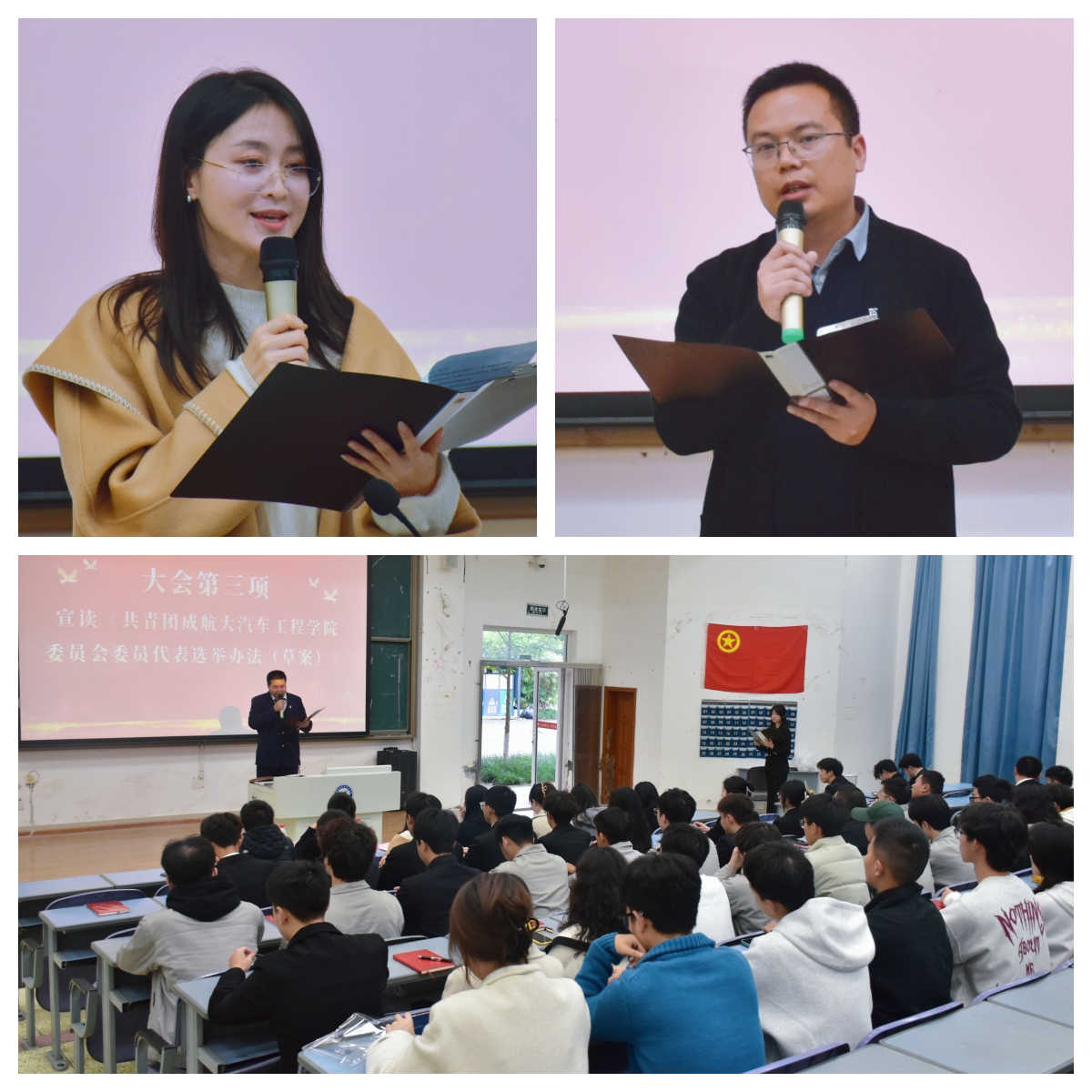 大会在激昂的《团歌》声中圆满落幕。此次大会是汽车工程学院共青团工作承前启后、继往开来的重要里程碑。新一届团总支委员会将以此为起点,在学院党总支和上级团组织的坚强领导下,紧密团结全院广大团员青年,高举理想信念旗帜,牢记服务宗旨,锐意改革创新,为学校建设和学院高质量发展书写更加绚丽的青春篇章!