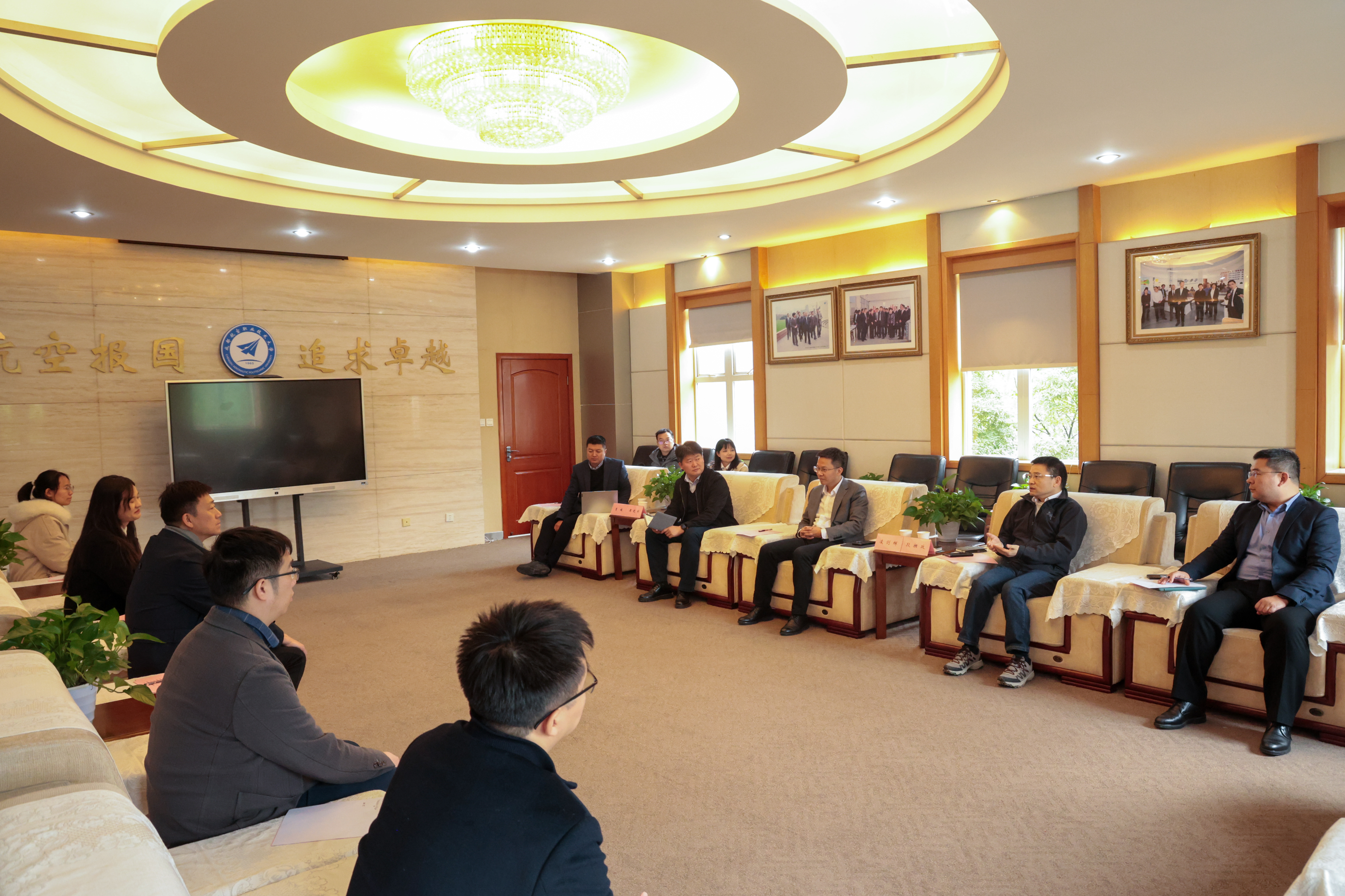 在交流讨论环节,双方围绕校企协同育人新路径、产业需求导向的人才培养、智能网联汽车领域技术发展趋势等内容进行了深入探讨,并就低空经济相关领域的合作方向交换了意见。双方一致认为,应紧抓新一轮产业发展机遇,充分发挥校企各自优势,推动合作向更高层次、更广领域拓展。