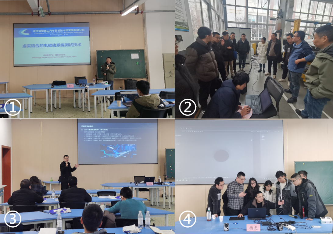 在专业技能模块,重庆理工大学叶明教授聚焦《新能源汽车电驱动系统测试》,结合电驱动系统结构与原理,讲解模型算法、测试标准、方法及关键技术,结合案例解析性能、可靠性、安全等核心测试内容,帮助参训教师提升专业技术素养,并在成航汽车学院SGAVE基地和工作室成员进行新能源汽车电气设备调研。一汽-大众成都分公司工程师杨光以《机器视觉应用于汽车智能制造及质量检测》为题,结合生产实际讲解机器视觉技术原理、优势及应用场景,通过案例演示其在零部件检测、效率提升中的作用,让教师直观了解技术应用。当日下午,杨光带领工作室成员开展机器视觉实操演练,配备专业设备与软件,每位参训教师均获得上手机会。在工程师指导下,教师依次完成设备调试、软件操作、样本检测等环节,切实将理论转化为实践能力,有效提升实践教学水平。