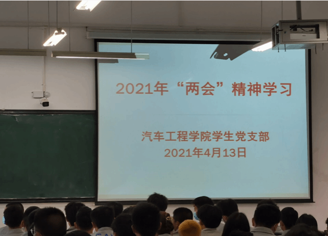 2021413日下午1400,汽车工程学院学生党支部在博学楼414开展了“两会”精神学习会议。出席本次会议的有汽车工程学院学生党支部书记刘文韬老师,汽车工程学院全体学生预备党员、发展对象、积极分子。