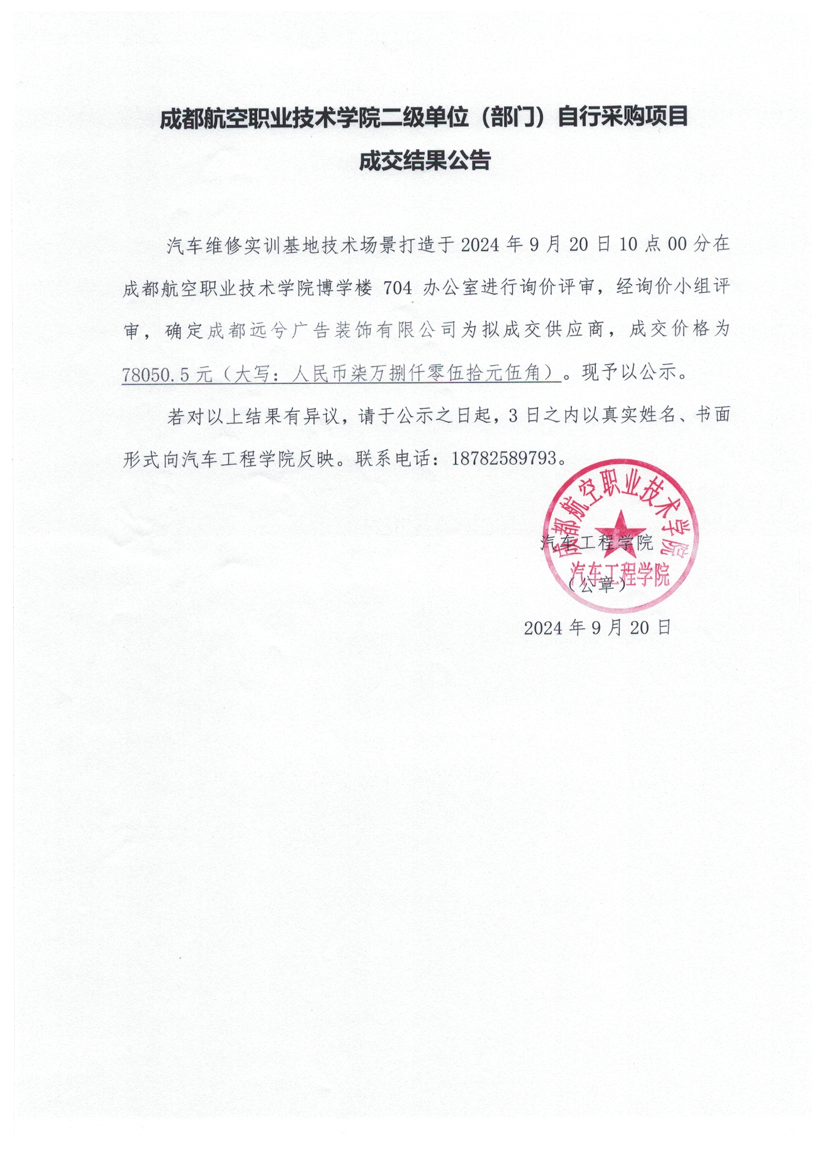 汽车维修实训基地技术场景打造采购项目成交结果公示