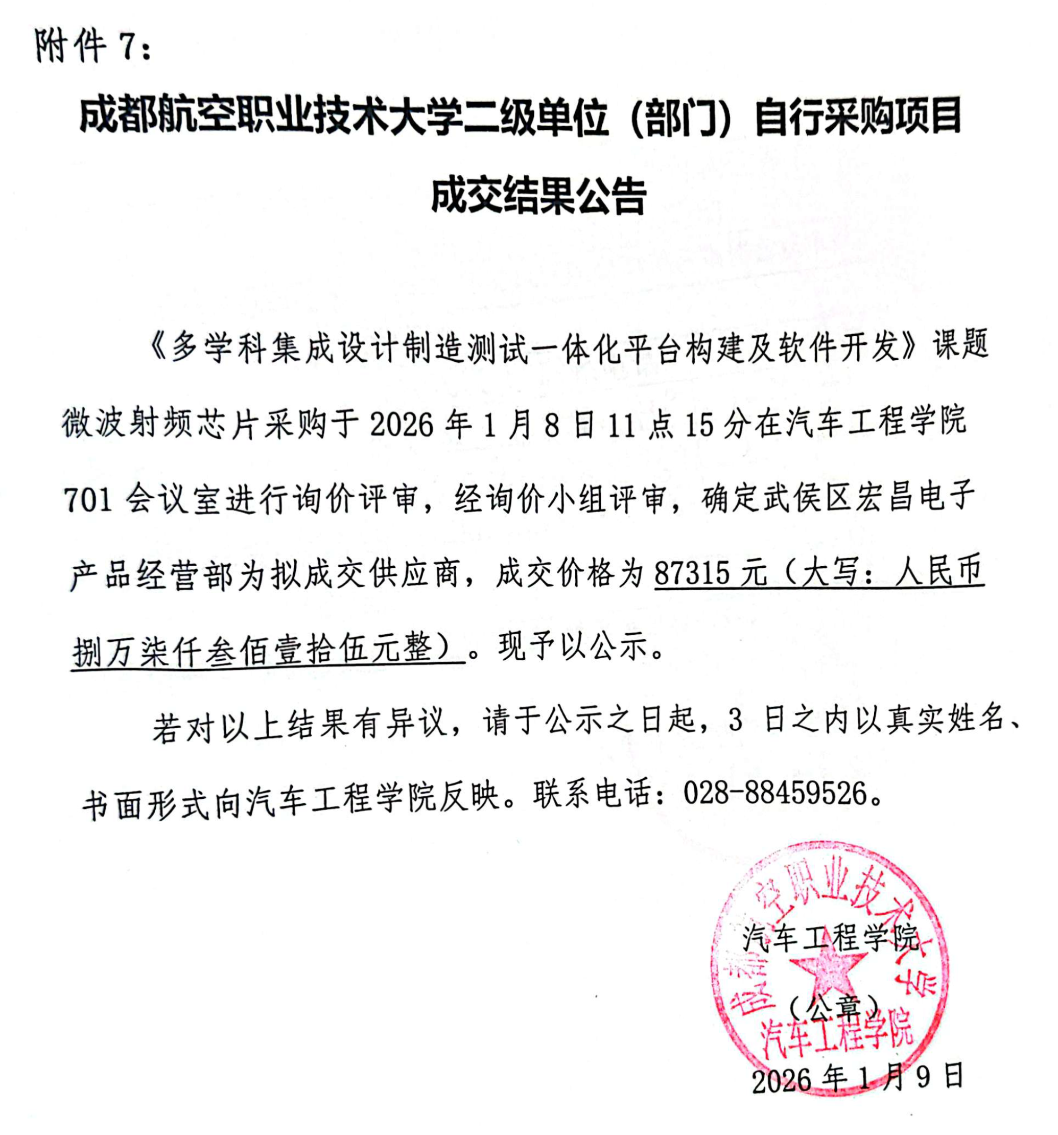 成都航空职业技术大学系留式无人机采购项目询价采购成交结果公告