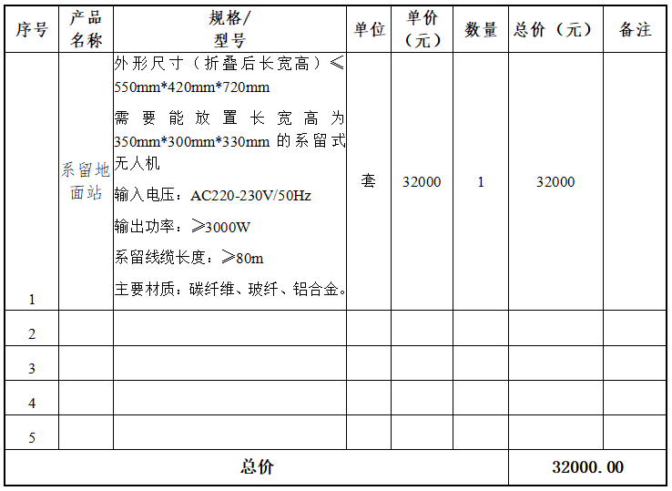 本项目为系留地面站采购项目,拟择优选择一家供应商为采购人提供货物。具体要求详见询价通知书第二章。