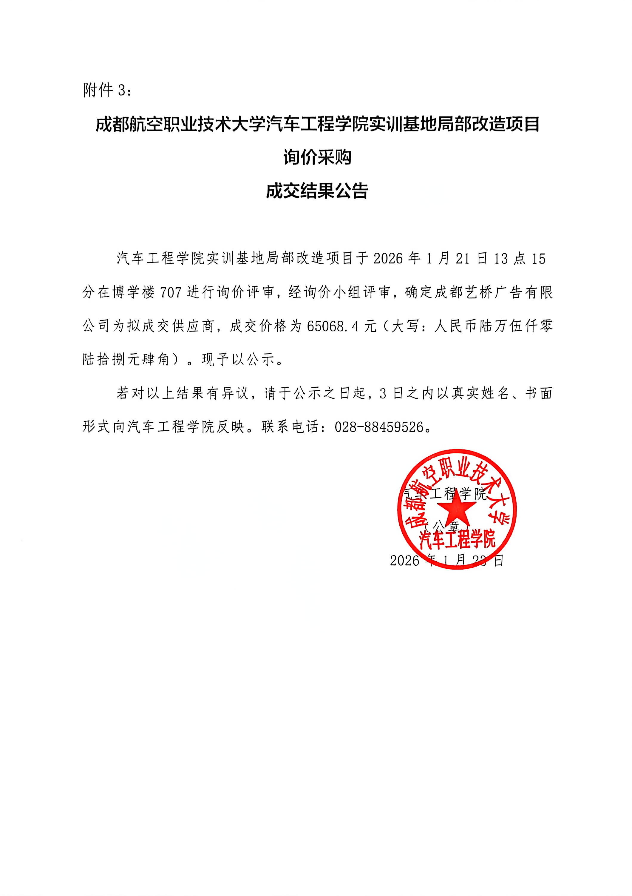 汽车工程学院关于设备电气控制与PLC应用H5资源采购询价成交结果公告
