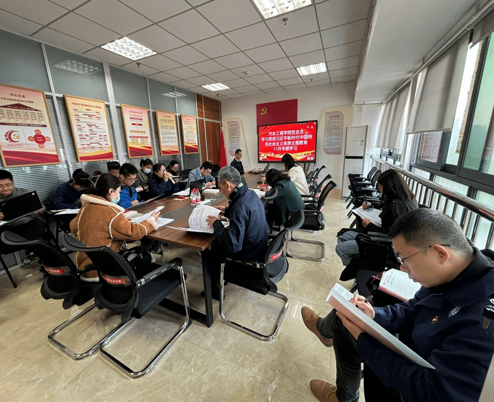 11月28日,汽车工程学院教师党支部和学生党支部分别在博学楼704党员活动室和党团一站式工作站开展学习贯彻习近平新时代中国特色社会主义思想主题教育主题十一月专题学习。会议分别由教师党支部书记梁亚峰和学生党支部书记汤旎主持,党总支副书记陈佳、胡登洲、王青春出席会议。