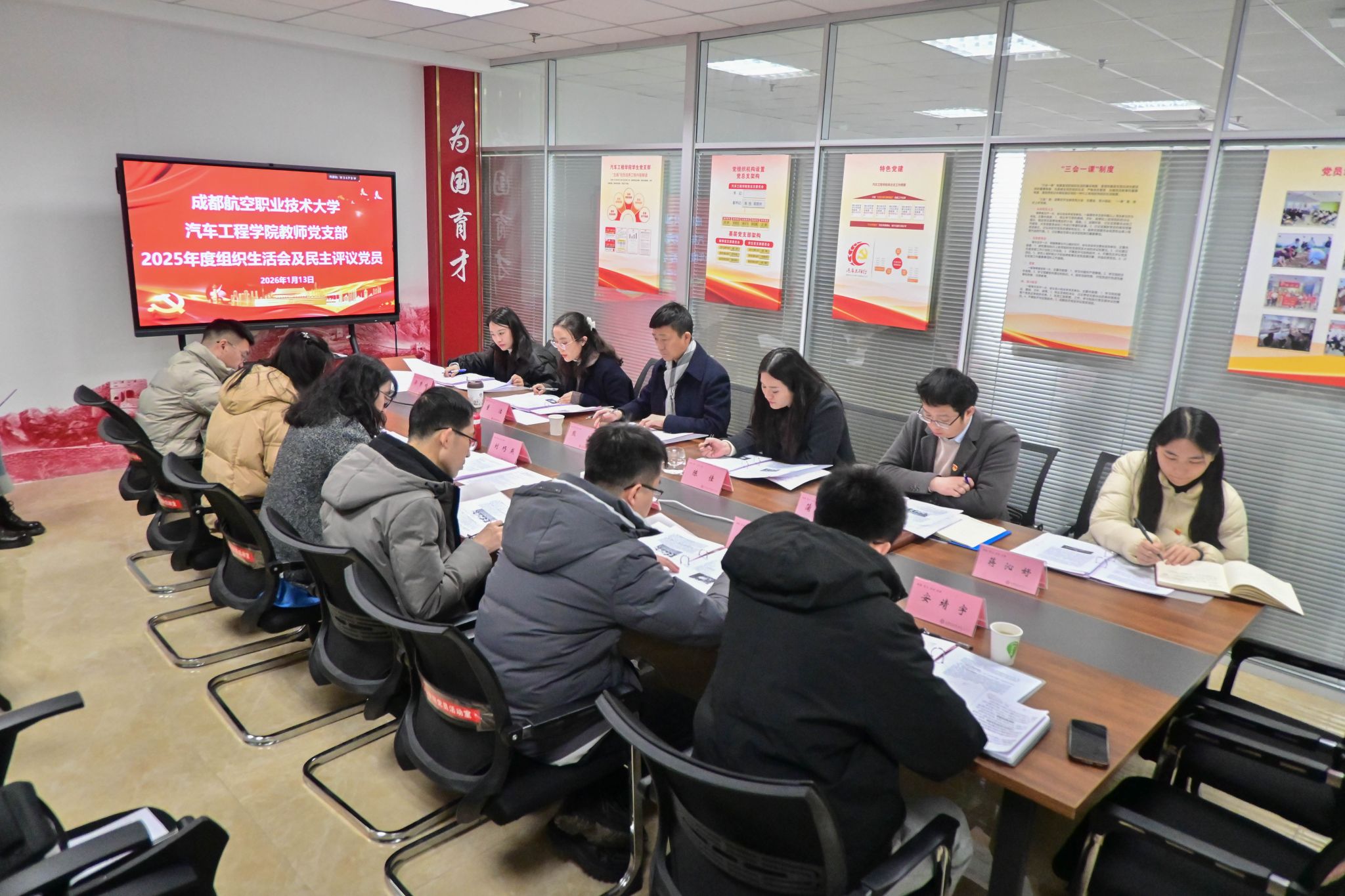 为深入学习贯彻党的二十届四中全会精神,巩固拓展深入贯彻中央八项规定精神学习教育成果,强化教师党支部政治功能,提升党员教师党性修养与履职能力,1月13日,成都航空职业技术大学汽车工程学院教师党支部2025年度组织生活会暨民主评议党员大会顺利召开。学校党委常委、副校长熊熙参加会议并指导工作。教师党支部书记董洁主持会议,支部党员教师及群众代表安靖宇参会。汽车工程学院党总支负责人陈佳、专项负责人蒲云飞以普通党员身份参加。