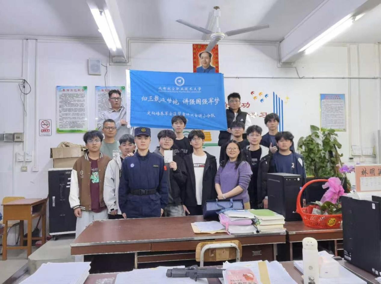 追梦步履不停,青春不负荣光。随着寒假落下帷幕,成都航空职业技术大学国防教育学院 “追梦”宣讲团带着满载的硕果与荣光顺利返程。此次返乡宣讲不仅是一次国防教育与航空科技知识的广泛传播,更是定向军士学员们提升综合素质、践行社会责任的一堂生动“实践课”。