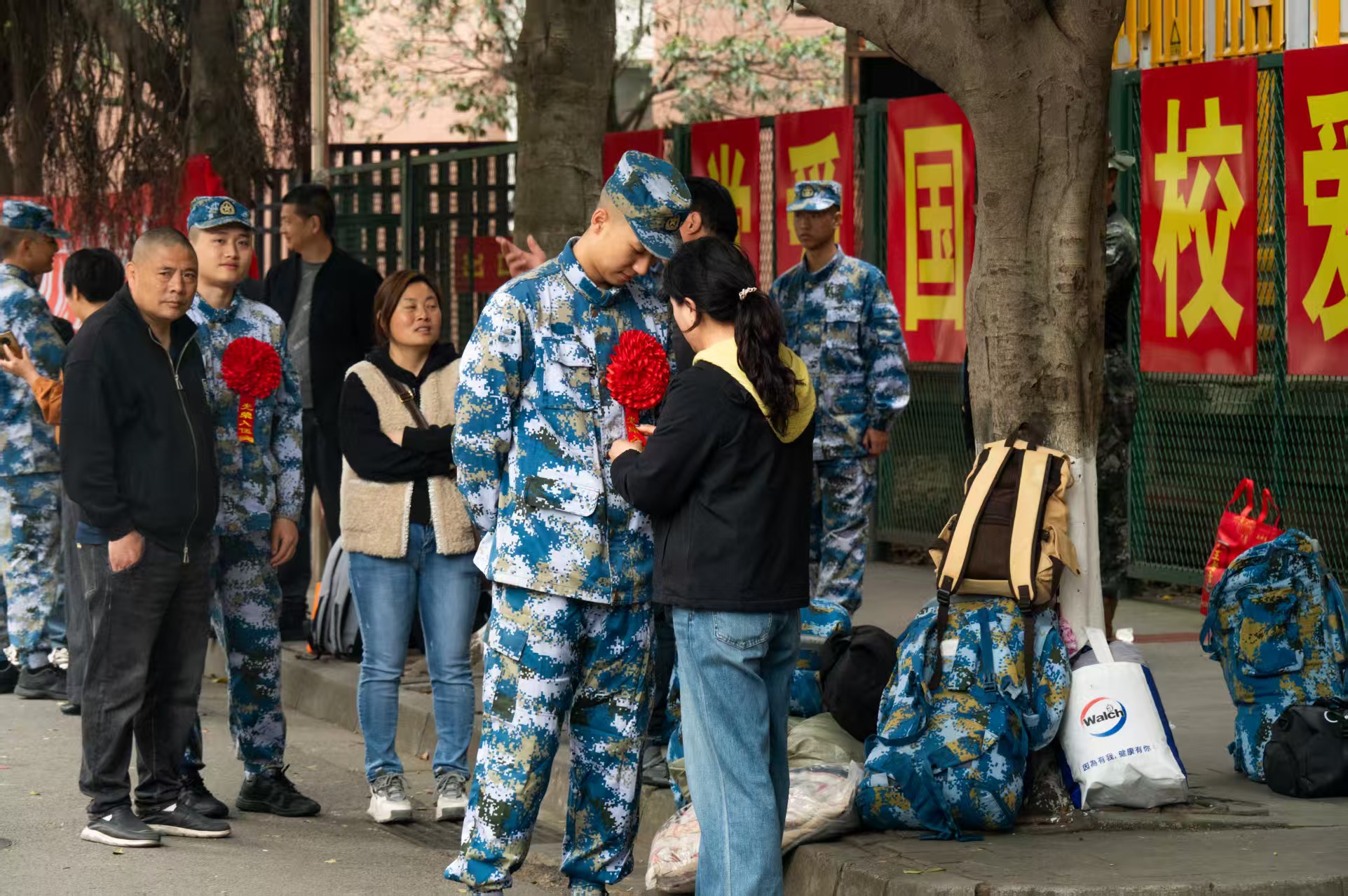 家长与入伍学军士道别