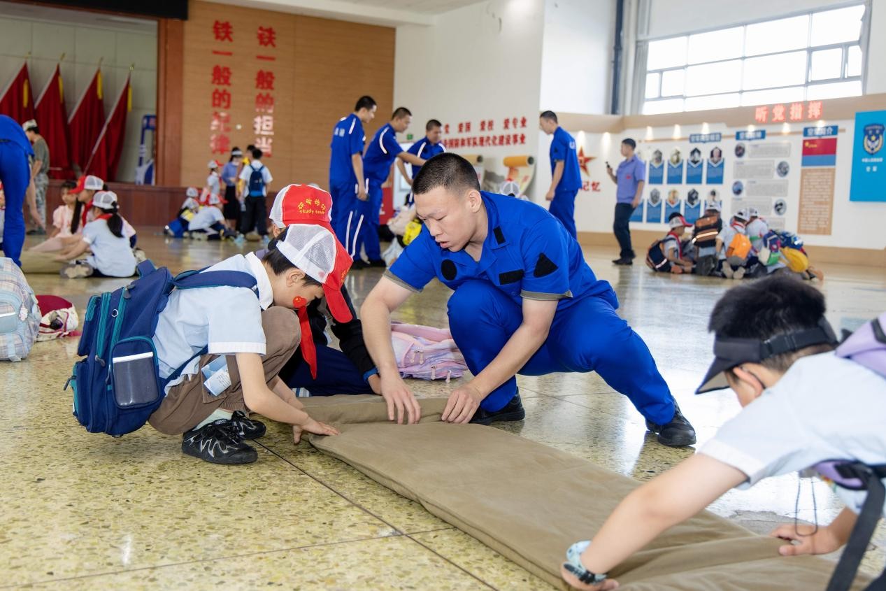 活动全程以“实景展示+沉浸体验+专题授课”的模式层层推进。开场的队列会操与基础战术科目演练中,学校定向培养军士军容严整、作风过硬,摆臂踢腿整齐划一,战术动作刚劲有力,嘹亮口令响彻全场,以过硬军事素养与严明纪律作风赢得师生阵阵掌声;随后的多维度研学环节有序铺展,国防装备展示区里,志愿者结合枪械模型讲解轻武器构造与国防装备发展知识,让同学们直观感受国防科技力量;内务规范体验区内,定向培养军士现场示范军被标准化叠制流程,一对一指导学生实操,在实践中培育严谨作风与规矩意识;航空模型展区中,工作人员结合战机模型讲解航空科普知识与中国航空工业发展历程,点燃孩子们逐梦蓝天的热忱;下午的实景研学环节,师生们走进航空馆、踏上停机坪,从航空发动机实物拆解的动力原理,到各型战机、直升机的机身结构与机载设备功能,沉浸式触摸航空工业发展脉络;研学尾声的国防知识专题讲座,系统阐释我国国防力量发展历程与辉煌成就,进一步深化了同学们对新时代国防建设的认知理解。