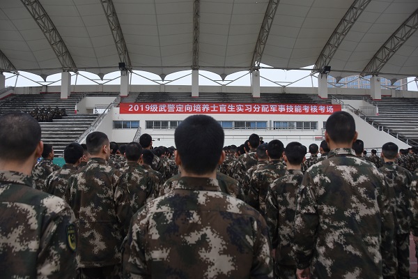 12月15日上午,士官管理学院协同四川武警总队对2019级定向培养士官进行了实习分配军事技能考核。四川武警总队选派近30名现役士官来学校担任本次考核的考官。