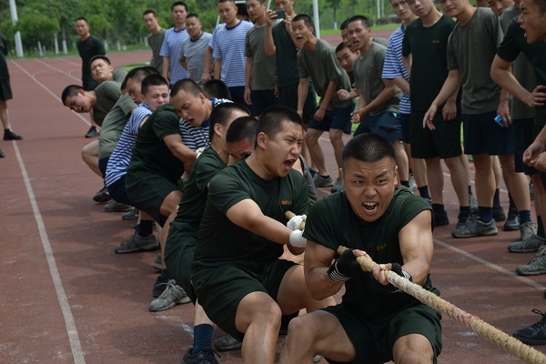 上午9时许,各科室干事在组长的组织下陆续到达操场。首先由郭锐为拔河队伍进行抽签,并对此次拔河比赛的规则及其注意事项进行讲解。比赛由九个小组三个大组进行比拼,最后三大组的第一名再争夺冠亚季军。比赛过程中学员们始终秉承“友谊第一,比赛第二”的原则,最小程度上减少意外的发生。学员们对此次活动极为积极热情,场下观众呐喊助威,场上选手铆劲比赛,整个拔河比赛群情激昂、气氛高涨。经激烈的角逐,军人服务社七、八组取得了冠军,其后依次为干部科、宣传科。卒末,由郭锐为其三个队伍颁取奖品。